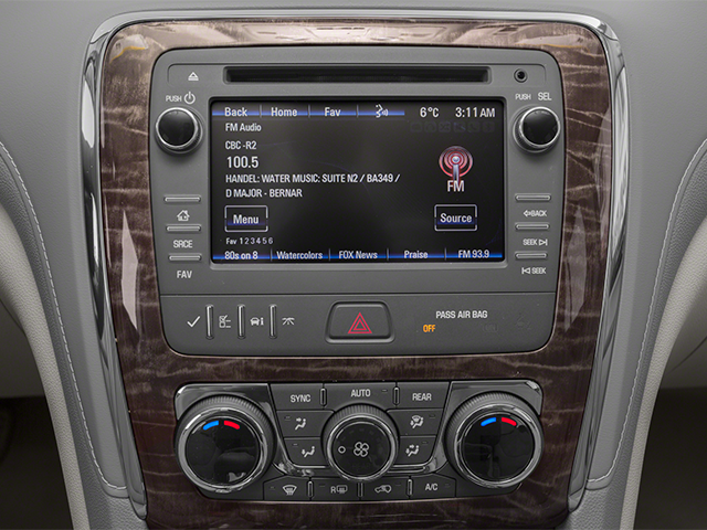 This Enclave is well equipped with Preferred Equipment Group 1SL (8-Way Power Driver Seat Adjuster, 8-Way Power Passenger Seat Adjuster, Heated Driver & Front Passenger Seats, Memory Settings, and Side Blind Zone Alert w/Cross Traffic Alert), FWD, 19" 9-Spoke Chrome-Clad Aluminum Wheels, 19" Aluminum (4) Wheels, 3.16 Axle Ratio, 3rd row seats: split-bench, 4-Wheel Disc Brakes, 6 Speakers, 7-Passenger Seating, ABS brakes, Air Conditioning, All-Weather Cargo Mat (LPO), All-Weather Floor Mats, Alloy wheels, AM/FM radio: SiriusXM, Auto-dimming Rear-View mirror, Automatic temperature control, Bose Performance Enhanced System, Brake assist, Bumpers: body-color, CD player, Compass, Delay-off headlights, Driver door bin, Driver vanity mirror, Dual front impact airbags, Dual front side impact airbags, Electronic Stability Control, Emergency communication system: OnStar Directions & Connections, Exterior Parking Camera Rear, Four wheel independent suspension, Front anti-roll bar, Front Bucket Seats, Front Center Armrest w/Storage, Front dual zone A/C, Front reading lights, Fully automatic headlights, Garage door transmitter, Heated door mirrors, Heated front seats, High intensity discharge headlights: Bi-Xenon, Illuminated entry, Leather steering wheel, Low tire pressure warning, Memory seat, NavTraffic, Occupant sensing airbag, Outside temperature display, Overhead airbag, Panic alarm, Passenger door bin, Passenger vanity mirror, Perforated Leather Seating Surfaces, Power door mirrors, Power driver seat, Power Liftgate, Power passenger seat, Power steering, Power Tilt-Sliding Sunroof, Power windows, Premium audio system: IntelliLink, Premium Ride Suspension, Radio data system, Radio: Color Touch AM/FM/HD/CD Player, Radio: Color Touch AM/FM/HD/CD w/Navigation, Rear air conditioning, Rear anti-roll bar, Rear Audio System Controls, Rear reading lights, Rear window defroster, Rear window wiper, Remote keyless entry, Roof rack: rails only, Security system, SiriusXM Satellite Radio, Speed control, Speed-sensing steering, Spoiler, Steering wheel mounted audio controls, Tachometer, Telescoping steering wheel, Tilt steering wheel, Traction control, Trip computer, Turn signal indicator mirrors, Variably intermittent wipers, and Voltmeter.
