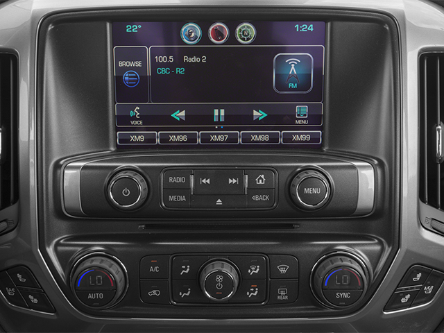 This Silverado 1500 is well equipped with Custom Sport (Body Color Door Handles, Body-Color Mirror Caps, and Wheels: 20" x 9" Polished-Aluminum), LT Convenience Package (110-Volt AC Power Outlet, Dual-Zone Automatic Climate Control, Electric Rear-Window Defogger, Front Halogen Fog Lamps, Radio: AM/FM 8" Diagonal Color Touch Screen, Rear Vision Camera w/Dynamic Guide Lines, Remote Vehicle Starter System, SiriusXM Satellite & HD Radio, and Theft Deterrent System (Unauthorized Entry)), Trailering Equipment (Heavy-Duty Rear Locking Differential), Preferred Equipment Group 1LT (150 Amp Alternator, 4.2" Diagonal Color Display Driver Info Center, 6 Speaker Audio System, Black Power Adjustable Heated Outside Mirrors, Bluetooth® For Phone, Chrome Grille w/Chrome Surround, Color-Keyed Carpeting w/Rubberized Vinyl Floor Mats, Deep-Tinted Glass, Driver & Front Passenger Illuminated Vanity Mirrors, EZ Lift & Lower Tailgate, Front Chrome Bumper, Leather Wrapped Steering Wheel w/Cruise Controls, Manual Tilt Wheel Steering Column, OnStar 6 Months Directions & Connections Plan, Power Windows w/Driver Express Up, Rear 60/40 Folding Bench Seat (Folds Up), Rear Chrome Bumper, Rear Wheelhouse Liners, Remote Keyless Entry, Single Slot CD/MP3 Player, and Steering Wheel Audio Controls), 6-Speed Automatic Electronic with Overdrive, 4WD, Black Cloth, 10-Way Power Driver's Seat Adjuster, 3.42 Rear Axle Ratio, 4-Wheel Disc Brakes, 40/20/40 Front Split Bench Seat, 6 Speakers, ABS brakes, Air Conditioning, Alloy wheels, AM/FM radio: SiriusXM, Auxiliary External Transmission Oil Cooler, Brake assist, Bumpers: chrome, CD player, Cloth Seat Trim, Compass, Delay-off headlights, Driver door bin, Driver vanity mirror, Dual front impact airbags, Dual front side impact airbags, Electronic Stability Control, Emergency communication system: OnStar Directions & Connections, Front anti-roll bar, Front Center Armrest w/Storage, Front Frame-Mounted Black Recovery Hooks, Front License Plate Kit, Front reading lights, Front wheel independent suspension, Fully automatic headlights, Heated door mirrors, Heated Driver & Front Passenger Seats, Heavy Duty Suspension, Illuminated entry, LED Cargo Box Lighting, Low tire pressure warning, Occupant sensing airbag, Outside temperature display, Overhead airbag, Overhead console, Panic alarm, Passenger door bin, Passenger vanity mirror, Power door mirrors, Power steering, Power windows, Premium audio system: Chevrolet MyLink, Radio data system, Radio: AM/FM Audio System w/Chevrolet MyLink, Rear reading lights, Rear seat center armrest, Rear step bumper, Remote keyless entry, Speed control, Speed-sensing steering, Split folding rear seat, Steering wheel mounted audio controls, Tachometer, Tilt steering wheel, Traction control, Trip computer, Variably intermittent wipers, Voltmeter, and Wheels: 17" x 8" Bright Machined Aluminum.