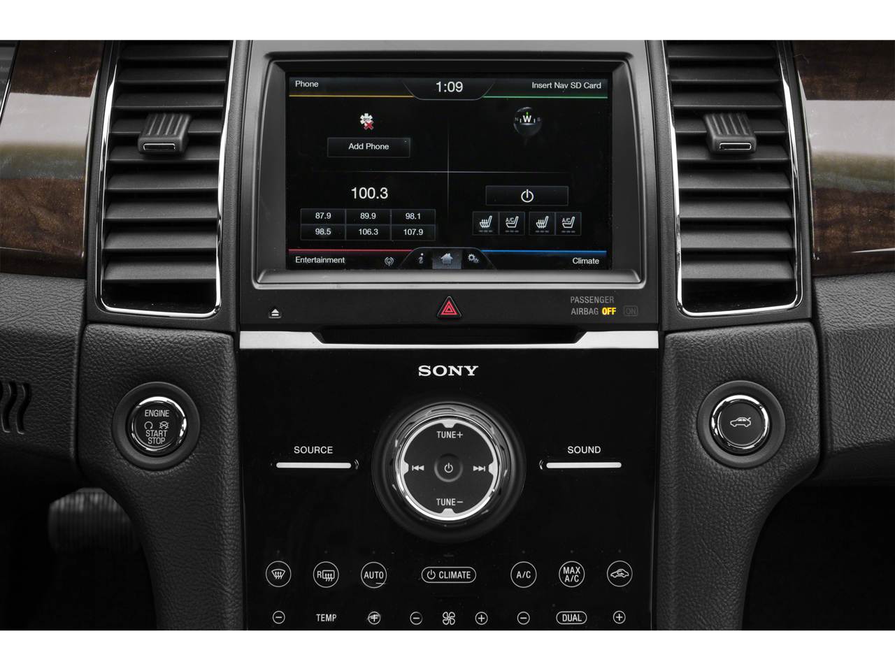This Taurus is well equipped with Equipment Group 201A (Additional IP Center Channel Speaker, Intelligent Access w/Push Button Start, Non-Memory Power Adjustable Pedals, and SYNC w/MyFord Touch & SYNC Services), 18" Painted Aluminum Wheels, 4-Wheel Disc Brakes, 6 Speakers, ABS brakes, Air Conditioning, Alloy wheels, AM/FM radio: SiriusXM, AM/FM Stereo/Single CD/MP3 Capable, Auto-dimming Rear-View mirror, Automatic temperature control, Brake assist, Bumpers: body-color, CD player, Compass, Delay-off headlights, Driver door bin, Driver vanity mirror, Dual front impact airbags, Dual front side impact airbags, Electronic Stability Control, Exterior Parking Camera Rear, Four wheel independent suspension, Front anti-roll bar, Front Bucket Seats, Front Center Armrest, Front dual zone A/C, Front License Plate Bracket, Front reading lights, Fully automatic headlights, Heated door mirrors, Illuminated entry, Low tire pressure warning, Occupant sensing airbag, Outside temperature display, Overhead airbag, Overhead console, Panic alarm, Passenger door bin, Passenger vanity mirror, Power door mirrors, Power driver seat, Power passenger seat, Power steering, Power windows, Radio data system, Rear anti-roll bar, Rear Parking Sensors, Rear reading lights, Rear seat center armrest, Rear Spoiler, Rear window defroster, Remote keyless entry, Security system, Speed control, Speed-sensing steering, Speed-Sensitive Wipers, Split folding rear seat, Steering wheel mounted audio controls, SYNC w/MyFord, Tachometer, Telescoping steering wheel, Tilt steering wheel, Traction control, Trip computer, Unique Cloth Bucket Seats, Variably intermittent wipers, and Voice Activated Navigation.