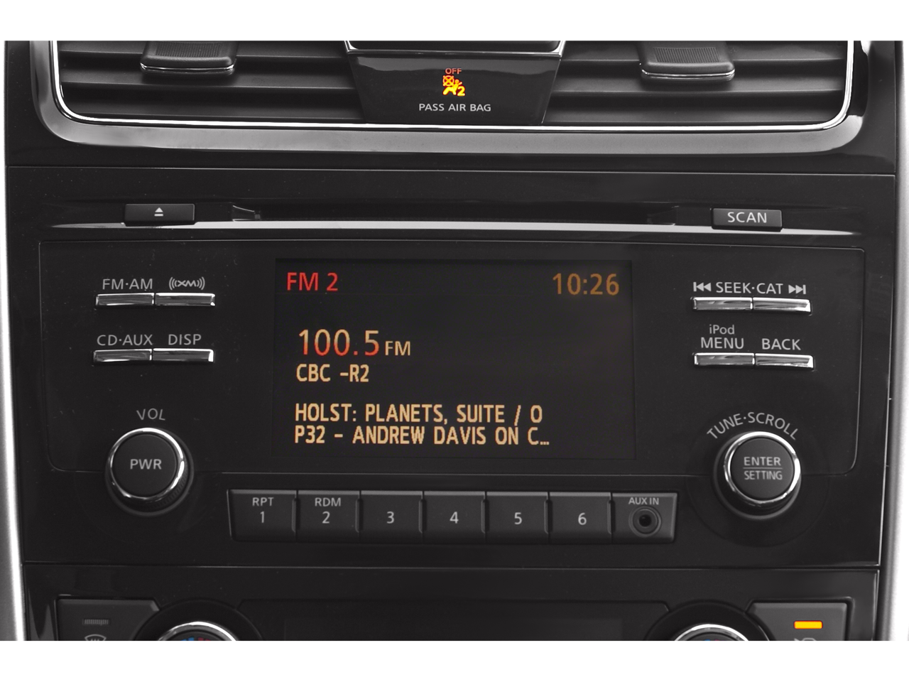 - Radio: AM/FM/CD/MP3 Audio System w/SiriusXM -inc: Radio Data System (RDS), aux-in, 6 speakers, streaming audio via Bluetooth® wireless technology, steering wheel-mounted audio controls, 5" color audio display, rearview monitor, USB port, hands-free text messaging assistant, NissanConnect Smartphone Apps, diversity antenna and Speed Sensitive Volume (SSV)