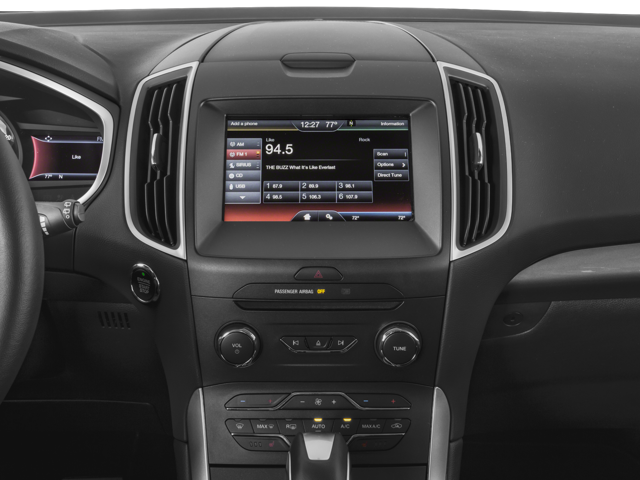 This Edge is well equipped with Equipment Group 200A, 4-Wheel Disc Brakes, 6 Speakers, ABS brakes, Air Conditioning, Alloy wheels, AM/FM radio: SiriusXM, AM/FM Stereo w/Single CD, Auto-dimming Rear-View mirror, Automatic temperature control, Axle Ratio: 3.16, Brake assist, Bumpers: body-color, CD player, Compass, Delay-off headlights, Driver door bin, Driver vanity mirror, Dual front impact airbags, Dual front side impact airbags, Electronic Stability Control, Emergency communication system, Exterior Parking Camera Rear, Four wheel independent suspension, Front anti-roll bar, Front Bucket Seats, Front Center Armrest w/Storage, Front dual zone A/C, Front License Plate Bracket, Front reading lights, Fully automatic headlights, Heated door mirrors, Illuminated entry, Knee airbag, Leather Shift Knob, Low tire pressure warning, Occupant sensing airbag, Outside temperature display, Overhead airbag, Overhead console, Panic alarm, Passenger door bin, Passenger vanity mirror, Power door mirrors, Power driver seat, Power passenger seat, Power steering, Power windows, Rear anti-roll bar, Rear Parking Sensors, Rear reading lights, Rear seat center armrest, Rear window defroster, Rear window wiper, Remote keyless entry, SiriusXM Radio, Speed control, Speed-Sensitive Wipers, Split folding rear seat, Spoiler, Steering wheel mounted audio controls, SYNC, Tachometer, Telescoping steering wheel, Tilt steering wheel, Traction control, Trip computer, Turn signal indicator mirrors, Unique Cloth Bucket Seats, Variably intermittent wipers, and Wheels: 18" Aluminum Painted Sparkle Silver.