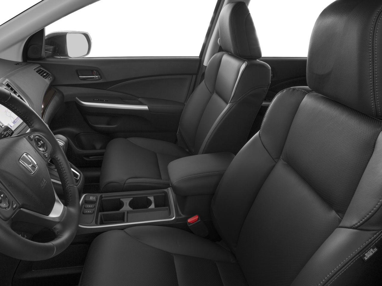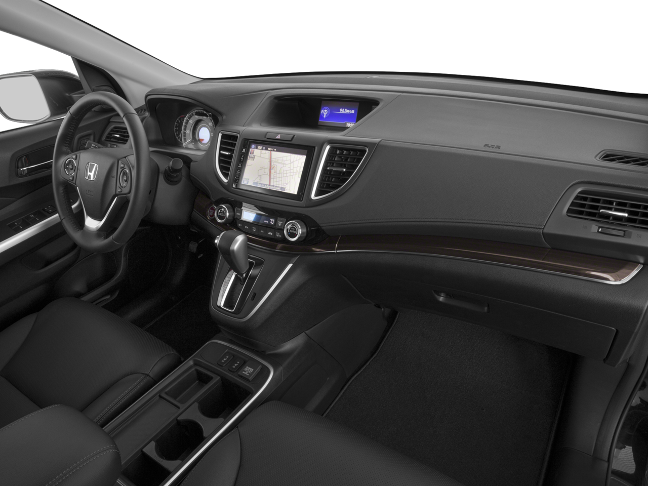 This CR-V is well equipped with AWD, 18" Alloy Wheels, 4-Wheel Disc Brakes, 5.048 Axle Ratio, 7 Speakers, ABS brakes, Air Conditioning, Alloy wheels, AM/FM radio: SiriusXM, Auto-dimming Rear-View mirror, Automatic temperature control, Brake assist, Bumpers: body-color, CD player, Compass, Delay-off headlights, Driver door bin, Driver vanity mirror, Dual front impact airbags, Dual front side impact airbags, Electronic Stability Control, Exterior Parking Camera Rear, Four wheel independent suspension, Front anti-roll bar, Front Bucket Seats, Front Center Armrest, Front dual zone A/C, Front fog lights, Front reading lights, Garage door transmitter: HomeLink, Heated door mirrors, Heated Front Bucket Seats, Heated front seats, Illuminated entry, Lane Departure Warning System, Leather Seat Trim, Leather Shift Knob, Low tire pressure warning, Memory seat, Navigation System, Occupant sensing airbag, Outside temperature display, Overhead airbag, Overhead console, Panic alarm, Passenger door bin, Passenger vanity mirror, Power door mirrors, Power driver seat, Power Liftgate, Power moonroof, Power steering, Power windows, Radio data system, Radio: AM/FM/CD/HD/SiriusXM Audio System, Rear anti-roll bar, Rear seat center armrest, Rear window defroster, Rear window wiper, Remote keyless entry, Roof rack: rails only, Security system, Speed control, Speed-sensing steering, Speed-Sensitive Wipers, Split folding rear seat, Steering wheel mounted audio controls, Tachometer, Telescoping steering wheel, Tilt steering wheel, Traction control, Trip computer, Turn signal indicator mirrors, and Variably intermittent wipers.
