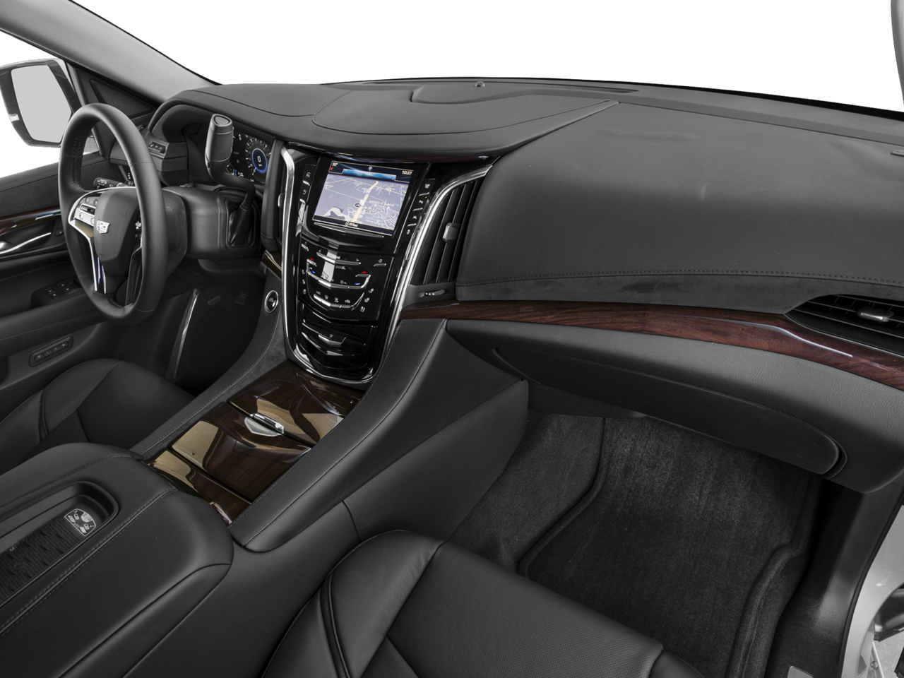 This Escalade is well equipped with Driver Awareness Package (Forward Collision Alert, IntelliBeam Automatic High Beam On/Off, Lane Change Alert w/Side Blind Zone Alert, Lane Keep Assist w/Lane Departure Warning, Low Speed Forward Automatic Braking, Rear Cross-Traffic Alert, and Safety Alert Seat), Preferred Equipment Group 1SB (Power Tilt-Sliding Sunroof w/Express-Open/Close, Rear Camera Mirror, Rear Camera Washer, Reconfigurable 4-Color Head-Up Display, and Second Row Bucket Seats), Theft-Deterrent Package (Inclination Sensor, Theft-Deterrent Alarm System, and Vehicle Interior Movement Sensor), Radiant Package (LPO) (Chrome Exhaust Tip, Galvano Surround Grille w/Silver Painted Mesh, Wheels: 22" Chrome 7-Split Spoke (LPO), and Wheels: 22" x 9" Steel (LPO)), 4WD, Black Leather, 12-Way Power Front Passenger Seat Adjuster, 16 Speakers, 2-Position Memory For Driver's Seat Adjuster, 3.23 Axle Ratio, 3rd row seats: split-bench, 4-Wheel Disc Brakes, ABS brakes, Adaptive suspension, Adjustable pedals, Air Conditioning, Alloy wheels, AM/FM radio: SiriusXM, Apple CarPlay/Android Auto, Auto High-beam Headlights, Auto tilt-away steering wheel, Auto-dimming door mirrors, Auto-leveling suspension, Automatic temperature control, Black Front License Plate Bracket, Bodyside moldings, Bose Centerpoint 16 Speaker Surround Sound System, Brake assist, Bumpers: body-color, CD player, Compass, Delay-off headlights, Driver door bin, Driver vanity mirror, Dual front impact airbags, Dual front side impact airbags, DVD-Audio, Electronic Stability Control, Emergency communication system: OnStar and Cadillac connected services capable, Exterior Parking Camera Rear, Front anti-roll bar, Front Bucket Seats, Front Center Armrest w/Storage, Front dual zone A/C, Front reading lights, Front wheel independent suspension, Fully automatic headlights, Garage door transmitter, HD Radio, Heads-Up Display, Heated & Cooled Front Bucket Seats, Heated door mirrors, Heated front seats, Heated rear seats, Heated steering wheel, Illuminated entry, Leather Seating Surfaces, Leather Shift Knob, Leather steering wheel, Low tire pressure warning, Magnetic Ride Control Suspension, Memory seat, Navigation System, NavTraffic, Occupant sensing airbag, Outside temperature display, Overhead airbag, Overhead console, Panic alarm, Passenger door bin, Passenger vanity mirror, Pedal memory, Power door mirrors, Power driver seat, Power Liftgate, Power moonroof, Power passenger seat, Power steering, Power windows, Radio data system, Radio: AM/FM Cadillac User Experience w/Nav, Rain sensing wipers, Rear air conditioning, Rear anti-roll bar, Rear audio controls, Rear reading lights, Rear Seat DVD Entertainment System, Rear window defroster, Rear window wiper, Remote keyless entry, Roof rack: rails only, Security system, Single Slot CD/MP3 Player, SiriusXM Satellite Radio, Speed control, Split folding rear seat, Spoiler, Steering wheel memory, Steering wheel mounted audio controls, Tachometer, Telescoping steering wheel, Tilt steering wheel, Traction control, Trip computer, Turn signal indicator mirrors, Variably intermittent wipers, Ventilated front seats, and Wheels: 22" x 9" 7-Spoke A