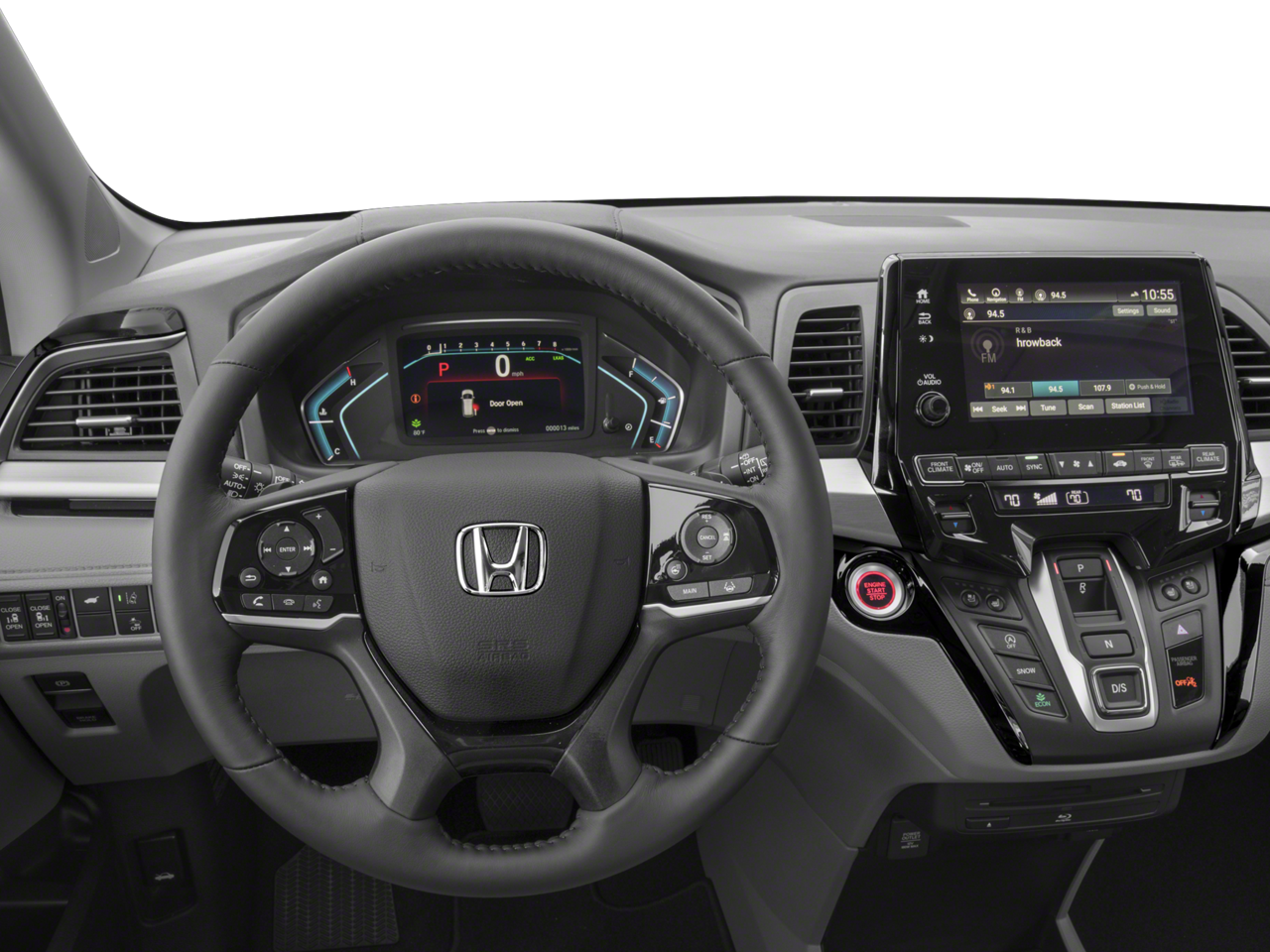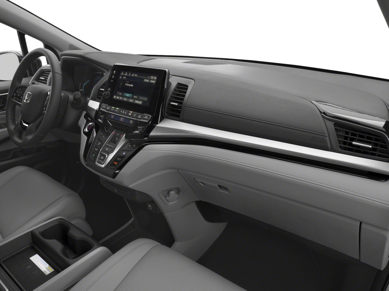 This Odyssey is well equipped with Navigation system: Honda Satellite-Linked Navigation System, 11 Speakers, 3.61 Axle Ratio, 3rd row seats: split-bench, 4-Wheel Disc Brakes, A/V remote, ABS brakes, Air Conditioning, Alloy wheels, AM/FM radio: SiriusXM, Anti-whiplash front head restraints, Apple CarPlay/Android Auto, Auto High-beam Headlights, Auto-dimming Rear-View mirror, Automatic temperature control, Blind Spot Information (BSI) System warning, Brake assist, Bumpers: body-color, CD player, Compass, Delay-off headlights, Driver door bin, Driver vanity mirror, Driver's Seat Mounted Armrest, Dual front impact airbags, Dual front side impact airbags, DVD-Audio, Electronic Stability Control, Emergency communication system: HondaLink, Exterior Parking Camera Rear, Four wheel independent suspension, Front anti-roll bar, Front Bucket Seats, Front dual zone A/C, Front fog lights, Front reading lights, Fully automatic headlights, Garage door transmitter: HomeLink, Headphones, Heated & Ventilated Front Bucket Seats, Heated door mirrors, Heated front seats, Heated steering wheel, Illuminated entry, Knee airbag, Leather Seat Trim, Leather steering wheel, Low tire pressure warning, Memory seat, Occupant sensing airbag, Outside temperature display, Overhead airbag, Overhead console, Panic alarm, Passenger door bin, Passenger seat mounted armrest, Passenger vanity mirror, Power door mirrors, Power driver seat, Power Liftgate, Power moonroof, Power passenger seat, Power steering, Power windows, Radio data system, Radio: 550-Watt AM/FM/HD Premium Audio System, Rain sensing wipers, Rear air conditioning, Rear anti-roll bar, Rear audio controls, Rear reading lights, Rear seat center armrest, Rear window defroster, Rear window wiper, Reclining 3rd row seat, Remote keyless entry, Security system, Speed control, Speed-sensing steering, Speed-Sensitive Wipers, Split folding rear seat, Spoiler, Steering wheel mounted audio controls, Tachometer, Telescoping steering wheel, Tilt steering wheel, Traction control, Trip computer, Turn signal indicator mirrors, Variably intermittent wipers, Ventilated front seats, and Wheels: 19" Machine-Finished Alloy.