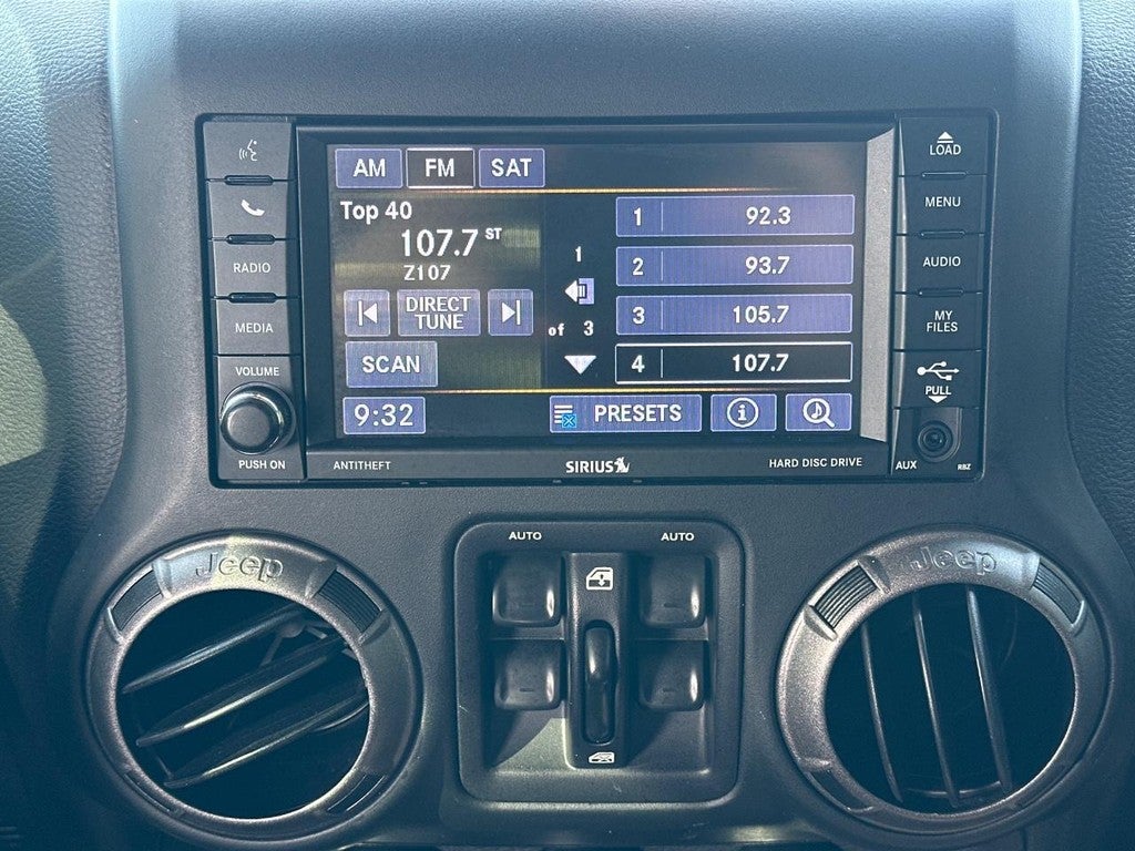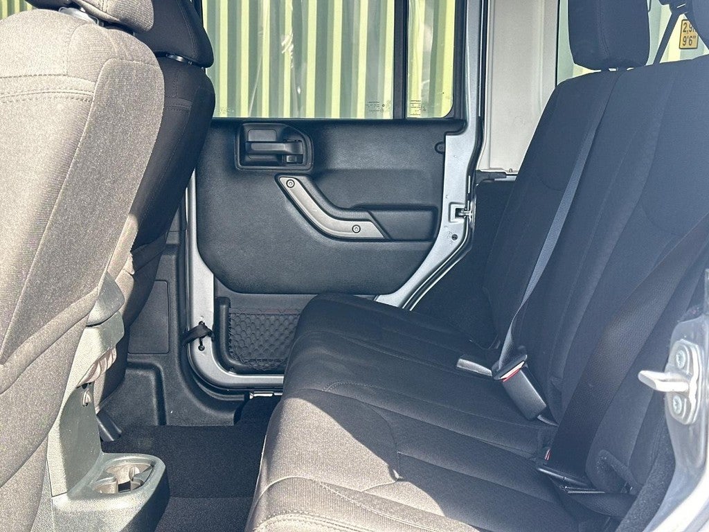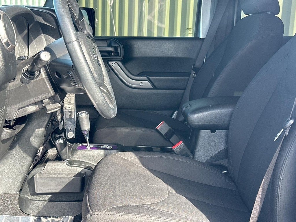 This Wrangler JK is well equipped with Connectivity Group (Tire Pressure Monitoring Display, Uconnect Voice Command w/Bluetooth®, and Vehicle Information Center), MOPAR Black Appearance Group (Black/Chrome Screws Fuel Filler Door, MOPAR Black Tail Lamp Guards, and Mopar Black Tubular Side Steps), Power Convenience Group (Auto-Dimming Mirror w/Reading Lamp, Front 1-Touch Down Power Windows, Power Heated Mirrors, Power Locks, Remote Keyless Entry, and Security Alarm), Quick Order Package 24S Sport S (17" x 7.5" Aluminum Wheels, Chrome/Leather Wrapped Shift Knob, Deep Tint Sunscreen Windows, and Leather Wrapped Steering Wheel), Trailer Tow Group (Class II Receiver Hitch and Trailer Tow w/4-Pin Connector Wiring), Quick Order Package 23S Sport S, 1-Yr SiriusXM Radio Service, 16" x 7.0" Luxury Styled Steel Wheels, 3.21 Rear Axle Ratio, 4-Wheel Disc Brakes, 8 Speakers, ABS brakes, Air Conditioning, AM/FM radio, Audio Jack Input for Mobile Devices, Black 3-Piece Hard Top, Brake assist, CD player, Cloth Seats w/Adjustable Head Restraints, Compass, Driver door bin, Driver Height Adjuster Seat, Driver vanity mirror, Dual front impact airbags, Electronic Stability Control, Freedom Panel Storage Bag, Front anti-roll bar, Front Bucket Seats, Front Center Armrest w/Storage, Front fog lights, Integrated roll-over protection, Low tire pressure warning, Normal Duty Suspension, Occupant sensing airbag, Outside temperature display, Passenger door bin, Passenger vanity mirror, Power steering, R1234YF A/C Refrigerant, Radio: 130, Radio: 430, Rear anti-roll bar, Rear Window Defroster, Rear Window Wiper/Washer, Remote USB Port, Speed control, Split folding rear seat, Steering wheel mounted audio controls, Sunrider Soft Top, Tachometer, Tilt steering wheel, Traction control, Trip computer, and Variably intermittent wipers.