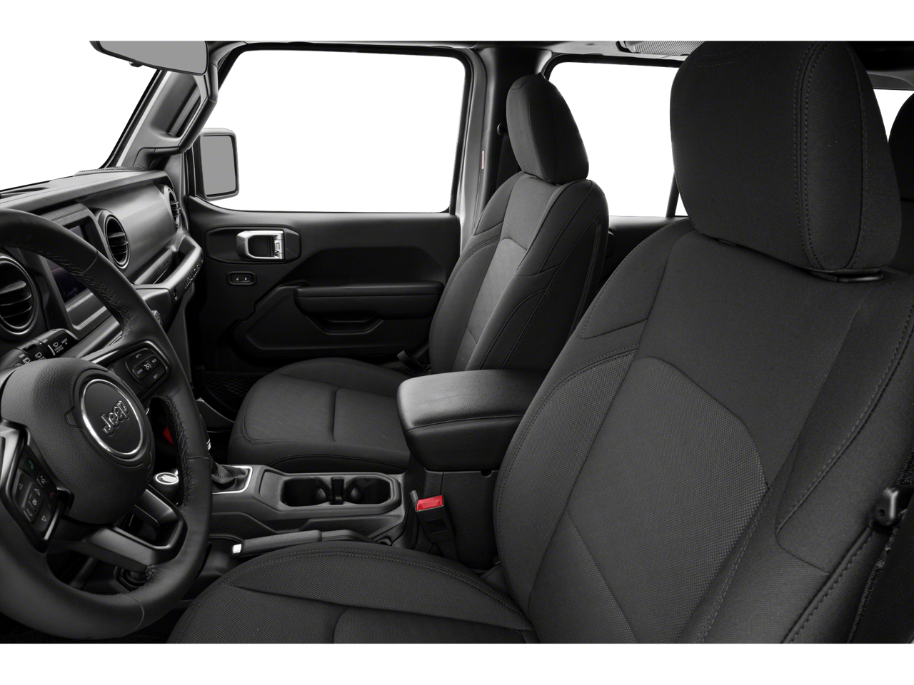 This Wrangler is well equipped with Convenience Group (Universal Garage Door Opener), Quick Order Package 23S Sport S (Automatic Headlamps, Deep Tint Sunscreen Windows, Front 1-Touch Down Power Windows, Leather Wrapped Steering Wheel, Power Heated Mirrors, Remote Keyless Entry, Security Alarm, Speed Sensitive Power Locks, Sun Visors w/Illuminated Vanity Mirrors, and Wheels: 17" x 7.5" Tech Silver Aluminum), Quick Order Package 24S Sport S, Technology Group (1-Yr SiriusXM Radio Service, 7.0" Touchscreen Display, Air Conditioning w/Auto Temperature Control, Air Filtering, Apple CarPlay, Cluster 7.0" TFT Color Display, For More Info, Call 800-643-2112, Google Android Auto, GPS Antenna Input, Integrated Center Stack Radio, Radio: Uconnect 4 w/7" Display, SiriusXM Satellite Radio, and USB Host Flip), Trailer Tow & HD Electrical Group (240 Amp Alternator, 7 & 4 Pin Wiring Harness, 700 Amp Maintenance Free Battery, Auxiliary Switches, and Class II Receiver Hitch), 3.45 Rear Axle Ratio, 4-Wheel Disc Brakes, 8 Speakers, ABS brakes, Air Conditioning, AM/FM radio, Anti-Spin Differential Rear Axle, Black 3-Piece Hard Top, Brake assist, Bridgestone Brand Tires, Cloth Low-Back Bucket Seats, Compass, Delay-off headlights, Driver door bin, Driver vanity mirror, Dual front impact airbags, Dual front side impact airbags, Electronic Stability Control, Freedom Panel Storage Bag, Front anti-roll bar, Front Bucket Seats, Front Center Armrest w/Storage, Front fog lights, Front reading lights, Integrated roll-over protection, Low tire pressure warning, Non-Lock Fuel Cap w/o Discriminator, Normal Duty Suspension, Occupant sensing airbag, Outside temperature display, ParkView Rear Back-Up Camera, Passenger door bin, Passenger vanity mirror, Power steering, Radio data system, Radio: Uconnect 3 w/5" Display, Rear anti-roll bar, Rear reading lights, Rear Window Defroster, Rear Window Wiper/Washer, Speed control, Split folding rear seat, Steering wheel mounted audio controls, Tachometer, Telescoping steering wheel, Tilt steering wheel, Traction control, Trip computer, Variably intermittent wipers, and Wheels: 17" x 7.5" Black Steel Styled.