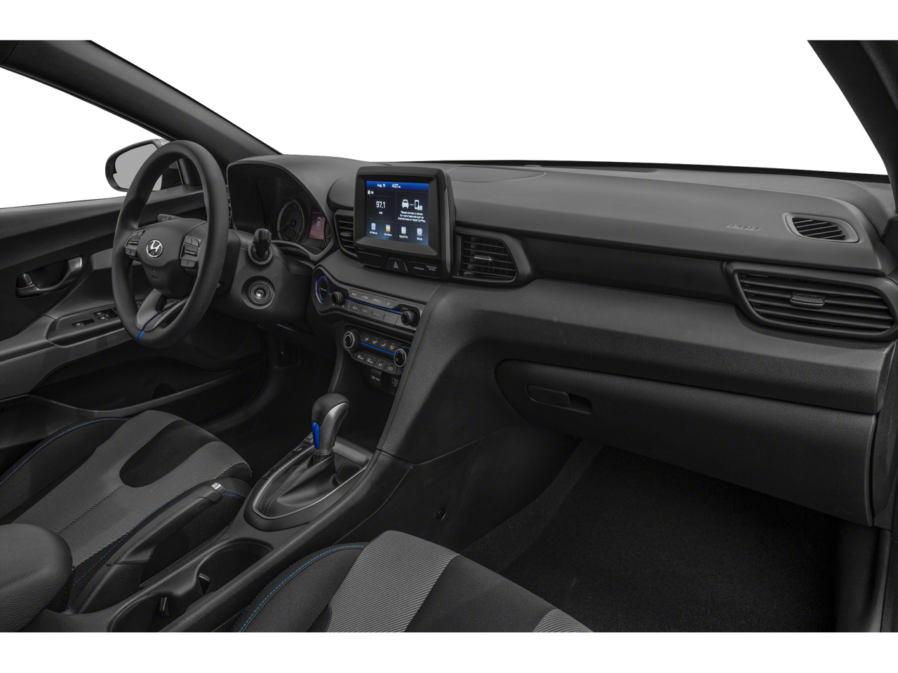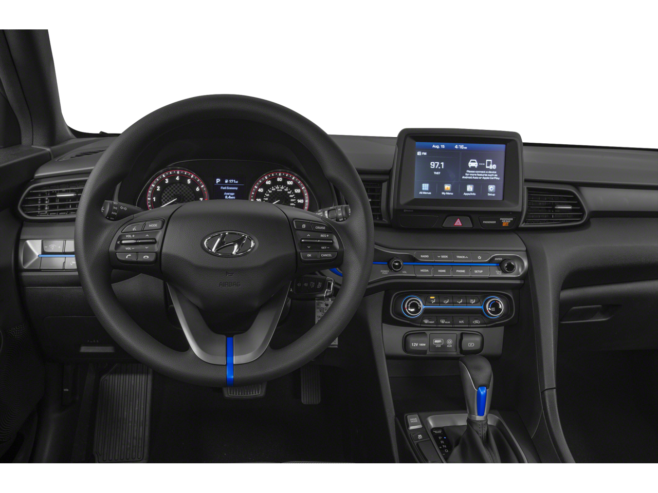 This Veloster is well equipped with Option Group 01, 17" x 7.0J Alloy Wheels, 4-Wheel Disc Brakes, 6 Speakers, ABS brakes, Air Conditioning, Alloy wheels, AM/FM radio, Apple CarPlay & Android Auto, Brake assist, Bumpers: body-color, Delay-off headlights, Driver door bin, Driver vanity mirror, Dual front impact airbags, Dual front side impact airbags, Electronic Stability Control, Exterior Parking Camera Rear, Four wheel independent suspension, Front anti-roll bar, Front Bucket Seats, Front Center Armrest, Front reading lights, Fully automatic headlights, Heated door mirrors, Illuminated entry, Low tire pressure warning, Occupant sensing airbag, Outside temperature display, Overhead airbag, Overhead console, Panic alarm, Passenger door bin, Passenger vanity mirror, Power door mirrors, Power steering, Power windows, Premium Cloth Seat Trim, Radio: AM/FM 7" Display Audio, Rear anti-roll bar, Rear window defroster, Rear window wiper, Remote keyless entry, Security system, Speed control, Speed-sensing steering, Split folding rear seat, Spoiler, Steering wheel mounted audio controls, Tachometer, Telescoping steering wheel, Tilt steering wheel, Traction control, Trip computer, and Variably intermittent wipers.