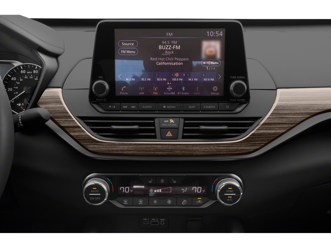 - Radio: AM/FM Audio System -inc: Radio Data System, MP3, aux-in, 6 speakers, NissanConnect featuring Apple CarPlay, Android Auto, 8" color display w/multi-touch control, SiriusXM satellite radio w/advanced audio features, 2 front illuminated USB connection ports (1 Type-A, 1 Type-C) for iPod interface and other compatible devices, Bluetooth® hands-free phone system, streaming audio via Bluetooth®, Hands-free text messaging assistant, Siri Eyes Free/Google Assistant voice recognition and Over-the-air (OTA) updating for headunit firmware via a Wi-Fi WPA2 connection
