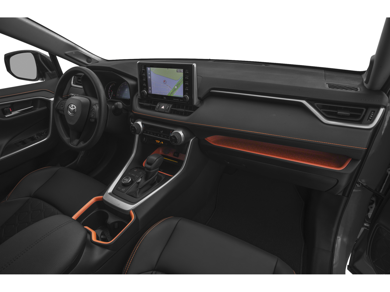 This RAV4 is well equipped with All Weather Liner Package (PPO) (All Weather Floor Liners and Cargo Liner), AWD, Mocha Artificial Leather, 4-Wheel Disc Brakes, 6 Speakers, ABS brakes, Air Conditioning, Alloy wheels, AM/FM radio: SiriusXM, Apple CarPlay, Auto High-beam Headlights, Automatic temperature control, Axle Ratio: 3.177, Brake assist, Bumpers: body-color, Delay-off headlights, Driver door bin, Driver vanity mirror, Dual front impact airbags, Dual front side impact airbags, Electronic Stability Control, Emergency communication system: Entune Safety Connect, Exterior Parking Camera Rear, Four wheel independent suspension, Front anti-roll bar, Front Bucket Seats, Front Center Armrest, Front dual zone A/C, Front fog lights, Front reading lights, Fully automatic headlights, Heated door mirrors, Illuminated entry, Knee airbag, Low tire pressure warning, Occupant sensing airbag, Outside temperature display, Overhead airbag, Overhead console, Panic alarm, Passenger door bin, Passenger vanity mirror, Power door mirrors, Power driver seat, Power Liftgate, Power steering, Power windows, Radio data system, Radio: Entune 3.0 Audio Plus, Rear anti-roll bar, Rear seat center armrest, Rear window defroster, Rear window wiper, Remote keyless entry, Roof rack: rails only, Security system, SofTex Seat Trim, Speed control, Speed-sensing steering, Split folding rear seat, Spoiler, Steering wheel mounted audio controls, Tachometer, Telescoping steering wheel, Tilt steering wheel, Traction control, Trip computer, Turn signal indicator mirrors, Variably intermittent wipers, and Wheels: 19" x 7.5J Alloy.