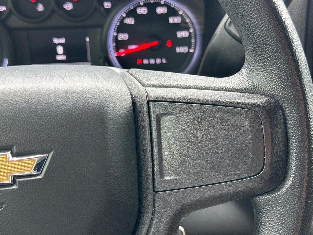 This Silverado 1500 is well equipped with Custom Convenience Package (Electric Rear-Window Defogger, EZ Lift Power Lock & Release Tailgate, LED Cargo Area Lighting, Remote Vehicle Starter System, and Theft Deterrent System (Unauthorized Entry)), Custom Value Package, Infotainment Package (4G LTE Wi-Fi Hot Spot Capable, Chevrolet Connected Access Capable, Compass, OnStar & Chevrolet Connected Services Capable, and SiriusXM Radio), Trailering Package (Hitch Guidance), 8-Speed Automatic, 4WD, Black Cloth, 120-Volt Bed Mounted Power Outlet, 120-Volt Instrument Panel Power Outlet, 220 Amps Alternator, 3.42 Rear Axle Ratio, 4-Wheel Disc Brakes, 40/20/40 Front Split Bench Seat, 6 Speakers, ABS brakes, Air Conditioning, Alloy wheels, Apple CarPlay/Android Auto, Automatic Stop/Start, Brake assist, Bumpers: body-color, Cloth Seat Trim, Delay-off headlights, Driver door bin, Driver vanity mirror, Dual front impact airbags, Dual front side impact airbags, Electronic Stability Control, Exterior Parking Camera Rear, Front 40/20/40 Split-Bench Seat, Front anti-roll bar, Front Center Armrest, Front License Plate Kit, Front reading lights, Front wheel independent suspension, Fully automatic headlights, Heated door mirrors, Heavy Duty Suspension, Heavy-Duty Rear Locking Differential, Illuminated entry, Low tire pressure warning, Occupant sensing airbag, Outside temperature display, Overhead airbag, Overhead console, Panic alarm, Passenger door bin, Passenger vanity mirror, Polished Exhaust Tip, Power door mirrors, Power steering, Power windows, Radio data system, Radio: Chevrolet Infotainment 3 System, Rear reading lights, Rear step bumper, Remote keyless entry, Single-Zone Manual/Semi-Automatic Air Conditioning, Speed control, Speed-sensing steering, Split folding rear seat, Tachometer, Tilt steering wheel, Traction control, Trip computer, Variably intermittent wipers, Voltmeter, and Wheels: 20" x 9" Bright Silver Painted Aluminum.