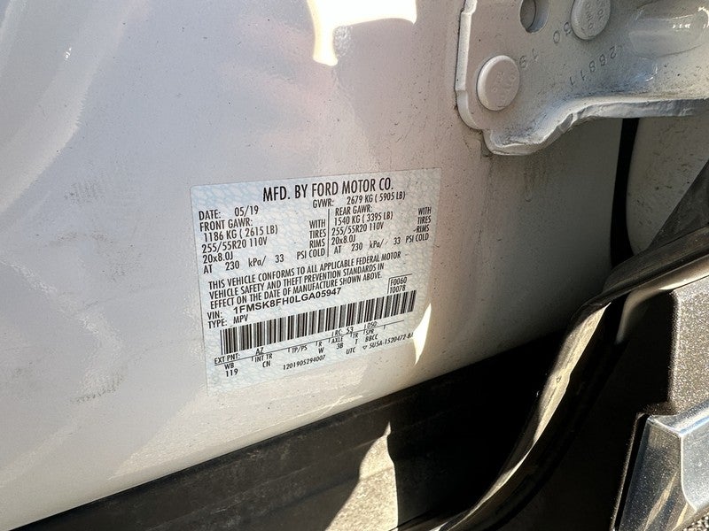 This Explorer is well equipped with Class III Trailer Tow Package, Equipment Group 300A, 4WD, Navigation System, 12 Speakers, 20" Premium Painted Aluminum Wheels, 3.58 Non-Limited-Slip Rear Axle Ratio, 3rd row seats: bench, 4-Wheel Disc Brakes, ABS brakes, Air Conditioning, Alloy wheels, AM/FM radio: SiriusXM, Auto High-beam Headlights, Auto-dimming Rear-View mirror, Automatic temperature control, Brake assist, Bumpers: body-color, Cargo Mat (Dealer Installed), Compass, Delay-off headlights, Driver door bin, Driver vanity mirror, Dual front impact airbags, Dual front side impact airbags, Electronic Stability Control, Emergency communication system: SYNC 3 911 Assist, Exterior Parking Camera Rear, FordPass Connect, Four wheel independent suspension, Front & Second Row Floor Liners, Front anti-roll bar, Front Bucket Seats, Front Center Armrest, Front dual zone A/C, Front fog lights, Front reading lights, Fully automatic headlights, Garage door transmitter: HomeLink, Heated door mirrors, Heated front seats, Heated rear seats, Heated steering wheel, Illuminated entry, Knee airbag, Leather Heated/Ventilated Captain's Chairs, Leather steering wheel, Low tire pressure warning, Memory seat, Occupant sensing airbag, Outside temperature display, Overhead airbag, Overhead console, Panic alarm, Passenger door bin, Passenger vanity mirror, Power door mirrors, Power driver seat, Power Liftgate, Power passenger seat, Power steering, Power windows, Radio data system, Radio: B&O Sound System by Bang & Olufsen, Rain sensing wipers, Rear air conditioning, Rear anti-roll bar, Rear reading lights, Rear window defroster, Rear window wiper, Remote keyless entry, Roof rack: rails only, Security system, Speed control, Speed-sensing steering, Speed-Sensitive Wipers, Split folding rear seat, Spoiler, Steering wheel memory, Steering wheel mounted audio controls, SYNC 3 Communications & Entertainment System, SYNC 3/Apple CarPlay/Android Auto, Tachometer, Telescoping steering wheel, Tilt steering wheel, Traction control, Trip computer, Turn signal indicator mirrors, Twin Panel Moonroof, Variably intermittent wipers, Ventilated front seats, Voice-Activated Touchscreen Navigation System, and Wheels: 20" Hand Polished Aluminum.