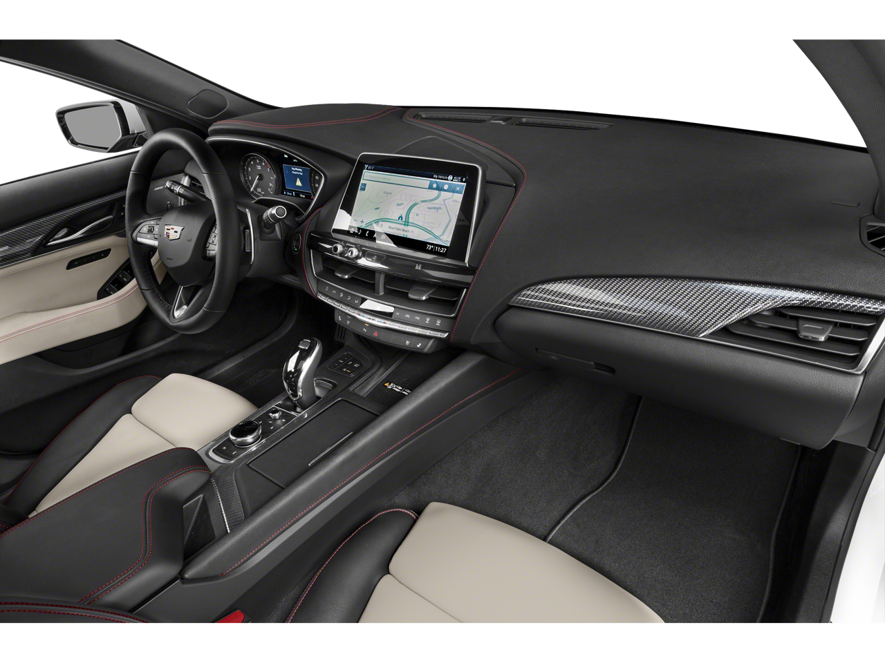 This CT5 is well equipped with Climate Package (Driver Power Lumbar Massage Seat, Front Passenger Power Lumbar Massage Seat, Heated Driver & Front Passenger Seats, Heated Steering Wheel, and Ventilated Driver & Front Passenger Seats), Navigation & Bose Premium Audio Package (Wireless Phone Charging), Preferred Equipment Group 1SE (4-Wheel Antilock 4-Wheel Disc Brakes, Automatic Emergency Braking, Body-Color Heated Pwr-Adjustable Outside Mirrors, Dual Diagonal Color Driver Information Center, HD Rear Vision Camera, Inside Rear-View Auto-Dimming Mirror, LED Reflective Windshield Alert, Manual Tilt & Telescoping Steering Column, Rear Park Assist, and Ride & Handling Suspension), Radio: Cadillac User Experience w/Embedded Nav (Bose Performance Series Premium 15-Speaker System and SiriusXM w/360L), 4-Wheel Disc Brakes, 9 Speakers, ABS brakes, Air Conditioning, Alloy wheels, AM/FM radio: SiriusXM with 360L, Apple CarPlay/Android Auto, Auto-dimming door mirrors, Auto-dimming Rear-View mirror, Automatic Stop/Start w/Disable, Automatic temperature control, Blue Brembo Calipers, Brake assist, Brembo V Performance Front Brakes, Bumpers: body-color, Compass, Delay-off headlights, Driver 4-Way Power Lumbar Seat Adjuster, Driver door bin, Driver vanity mirror, Dual front impact airbags, Dual front side impact airbags, Electronic Stability Control, Emergency communication system: OnStar and Cadillac connected services capable, Exterior Parking Camera Rear, Four wheel independent suspension, Front anti-roll bar, Front Bucket Seats, Front Center Armrest, Front dual zone A/C, Front License Plate Bracket, Front Passenger 4-Way Power Lumbar Seat Adjuster, Front reading lights, Fully automatic headlights, Garage door transmitter, HD Radio, Heated door mirrors, Illuminated entry, Knee airbag, Leather steering wheel, Leatherette Seating Surfaces, Low tire pressure warning, Memory seat, Occupant sensing airbag, Outside temperature display, Overhead airbag, Overhead console, Panic alarm, Passenger door bin, Passenger vanity mirror, Power door mirrors, Power driver seat, Power passenger seat, Power steering, Power windows, Premium 9-Speaker Audio System Feature, Radio data system, Radio: Cadillac User Experience, Rain sensing wipers, Rear anti-roll bar, Rear reading lights, Rear seat center armrest, Rear window defroster, Remote keyless entry, Speed control, Speed-sensing steering, Split folding rear seat, Spoiler, Steering wheel mounted audio controls, Tachometer, Telescoping steering wheel, Tilt steering wheel, Traction control, Trip computer, Turn signal indicator mirrors, UltraView Dual Pane Sunroof, Variably intermittent wipers, Voltmeter, Wheels: 19" Alloy w/Pearl Nickel Finish, and Wheels: 19" Alloy w/Satin Graphite Finish.
