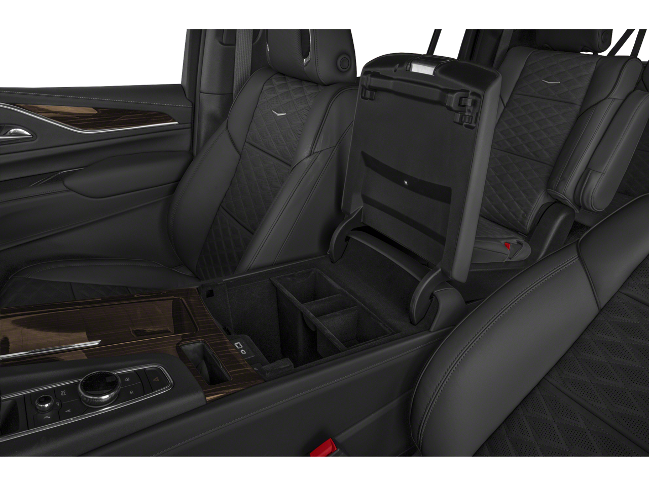 This Escalade ESV is well equipped with Driver Assist Tech Package (Adaptive Cruise Control, Air Ride Adaptive Suspension, Automatic Seat Belt Tightening, Enhanced Automatic Emergency Braking, Illuminating Front & Rear Sill Plates, Reverse Automatic Braking, and Soft Closing Front & Rear Doors), Performance Package (Electronic Limited-Slip Differential, Hitch Guidance w/Hitch View, In-Vehicle Trailering System App, Integrated Trailer Brake Controller, Magnetic Ride Control Suspension, and Trailer Side Blind Zone Alert), Preferred Equipment Group 1SB (Air Ionizer, AKG Studio 19-Speaker Audio System, Automatic Emergency Braking, Door Lock & Latch Shields, Electronic Cruise Control w/Set & Resume Speed, Enhanced Automatic Parking Assist, Glass Breakage Sensor, Lane Change Alert w/Side Blind Zone Alert, Lane Keep Assist w/Lane Departure Warning, Mechanical Limited-Slip Differential, Power Panoramic Tilt-Sliding Sunroof, Rear Camera Mirror, Rear Camera Mirror Washer, Rear Cross Traffic Alert, Reconfigurable Full-Color Head-Up Display, Running Board Assist Steps, Theft-Deterrent Alarm System, Vehicle Inclination Sensor, and Vehicle Interior Movement Sensor), 4WD, 16.9" Diagonal OLED Infotainment Screen, 19 Speakers, 2-Presets Memory For Driver Seat Adjuster, 3.23 Axle Ratio, 3rd row seats: split-bench, 4-Way Power Driver Lumbar Seat Adjuster, 4-Way Power Front Passenger Lumbar Seat Adjuster, 4-Wheel Disc Brakes, 8-Way Power Driver Seat Adjuster, 8-Way Power Front Passenger Seat Adjuster, ABS brakes, Air Conditioning, All-Weather Floor Liners (LPO), All-Weather Integrated Cargo Liner (LPO), Alloy wheels, AM/FM radio: SiriusXM with 360L, Apple CarPlay/Android Auto, Audio memory, Auto High-beam Headlights, Auto tilt-away steering wheel, Auto-dimming door mirrors, Automatic temperature control, Brake assist, Bumpers: body-color, Compass, Delay-off headlights, Driver door bin, Driver vanity mirror, Dual front impact airbags, Dual front side impact airbags, Electronic Stability Control, Emergency communication system: OnStar and Cadillac connected services capable, Four wheel independent suspension, Front anti-roll bar, Front Bucket Seats, Front Center Armrest w/Storage, Front dual zone A/C, Front License Plate Bracket, Front reading lights, Fully automatic headlights, Garage door transmitter, HD Radio, Heads-Up Display, Heated & Ventilated Driver & Front Passenger Seats, Heated door mirrors, Heated Driver & Front Passenger Seats, Heated front seats, Heated rear seats, Heated steering wheel, Illuminated entry, Leather Seating Surfaces w/Mini-Chevron Perf Inserts, Leather steering wheel, Low tire pressure warning, Memory seat, Navigation System, Occupant sensing airbag, Outside temperature display, Overhead airbag, Overhead console, Panic alarm, Passenger door bin, Passenger vanity mirror, Power door mirrors, Power driver seat, Power Liftgate, Power moonroof, Power passenger seat, Power steering, Power windows, Premium Smooth Ride Suspension, Puddle Lamps w/Cadillac Crest (LPO), Radio data system, Radio: AM/FM/SiriusXM w/Navigation, Rain sensing wipers, Rear air conditioning, Rear anti-roll bar, Rear reading lights, Rear window defroster, Rear window wiper, Remote keyless entry, Roof rack: rails only, Security system, SiriusXM w/360L, Speed control, Split folding rear seat, Spoiler, Steering wheel memory, Steering wheel mounted audio controls, Tachometer, Teen Driver, Telescoping steering wheel, Tilt steering wheel, Traction control, Trip computer, Turn signal indicator mirrors, Variably intermittent wipers, Ventilated front seats, Voltmeter, Wheels: 22" 14-Spoke Alloy w/Polished Finish, Wheels: 22" Interim (LPO), Wheels: 22" Multi-Spoke Polished Alloy (LPO), and Wireless Apple CarPlay/Wireless Android Auto.