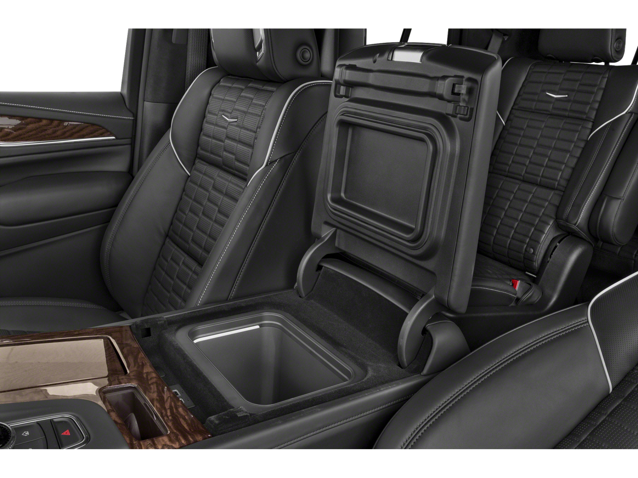 This Escalade is well equipped with Driver Assist Tech Package (Adaptive Cruise Control, Air Ride Adaptive Suspension, Automatic Seat Belt Tightening, Enhanced Automatic Emergency Braking, Illuminating Front & Rear Sill Plates, Reverse Automatic Braking, and Soft Closing Front & Rear Doors), Heavy-Duty Trailering Package (2-Speed Active Transfer Case, Extra Capacity Cooling System, Trailer Tire Pressure Monitoring System, Trailering Assist Guidelines, and Wired Auxiliary Trailer Camera (LPO)), Preferred Equipment Group 1SH (Air Ionizer, AKG Studio Reference 36-Speaker Audio System, Body-Color Door Handles, Door Lock & Latch Shields, Electronic Limited-Slip Differential, Enhanced Automatic Parking Assist, Floor Console w/Covered Storage, Glass Breakage Sensor, Hitch Guidance w/Hitch View, In-Vehicle Trailering System App, Integrated Trailer Brake Controller, Lane Keep Assist w/Lane Departure Warning, Platinum Interior Trim, Power Panoramic Tilt-Sliding Sunroof, Rear Camera Mirror, Rear Camera Mirror Washer, Rear Cross Traffic Alert, Rear Seat Entertainment System, Reconfigurable Full-Color Head-Up Display, Running Board Assist Steps, Theft-Deterrent Alarm System, Trailer Side Blind Zone Alert, Vehicle Inclination Sensor, and Vehicle Interior Movement Sensor), 4WD, Dark Auburn With Jet Black Accents Leather, 16.9" Diagonal OLED Infotainment Screen, 2-Presets Memory For Driver Seat Adjuster, 3.23 Axle Ratio, 3rd row seats: split-bench, 4-Way Power Driver Lumbar Seat Adjuster, 4-Way Power Front Passenger Lumbar Seat Adjuster, 4-Wheel Disc Brakes, 8-Way Power Driver Seat Adjuster, 8-Way Power Front Passenger Seat Adjuster, A/V remote, ABS brakes, Adaptive suspension, Air Conditioning, Alloy wheels, AM/FM radio: SiriusXM with 360L, Apple CarPlay/Android Auto, Audio memory, Auto High-beam Headlights, Auto tilt-away steering wheel, Auto-dimming door mirrors, Auto-dimming Rear-View mirror, Automatic temperature control, Brake assist, Bumpers: body-color, Compass, Cooled Console w/Covered Storage, Delay-off headlights, Door auto-latch, Driver door bin, Driver vanity mirror, Dual front impact airbags, Dual front side impact airbags, Electronic Stability Control, Emergency communication system: OnStar and Cadillac connected services capable, Four wheel independent suspension, Front anti-roll bar, Front Bucket Seats, Front Center Armrest w/Storage, Front dual zone A/C, Front reading lights, Front Reflective Window Shade (LPO), Full Semi-Aniline Leather Seats, Fully automatic headlights, Garage door transmitter, Genuine wood console insert, Genuine w