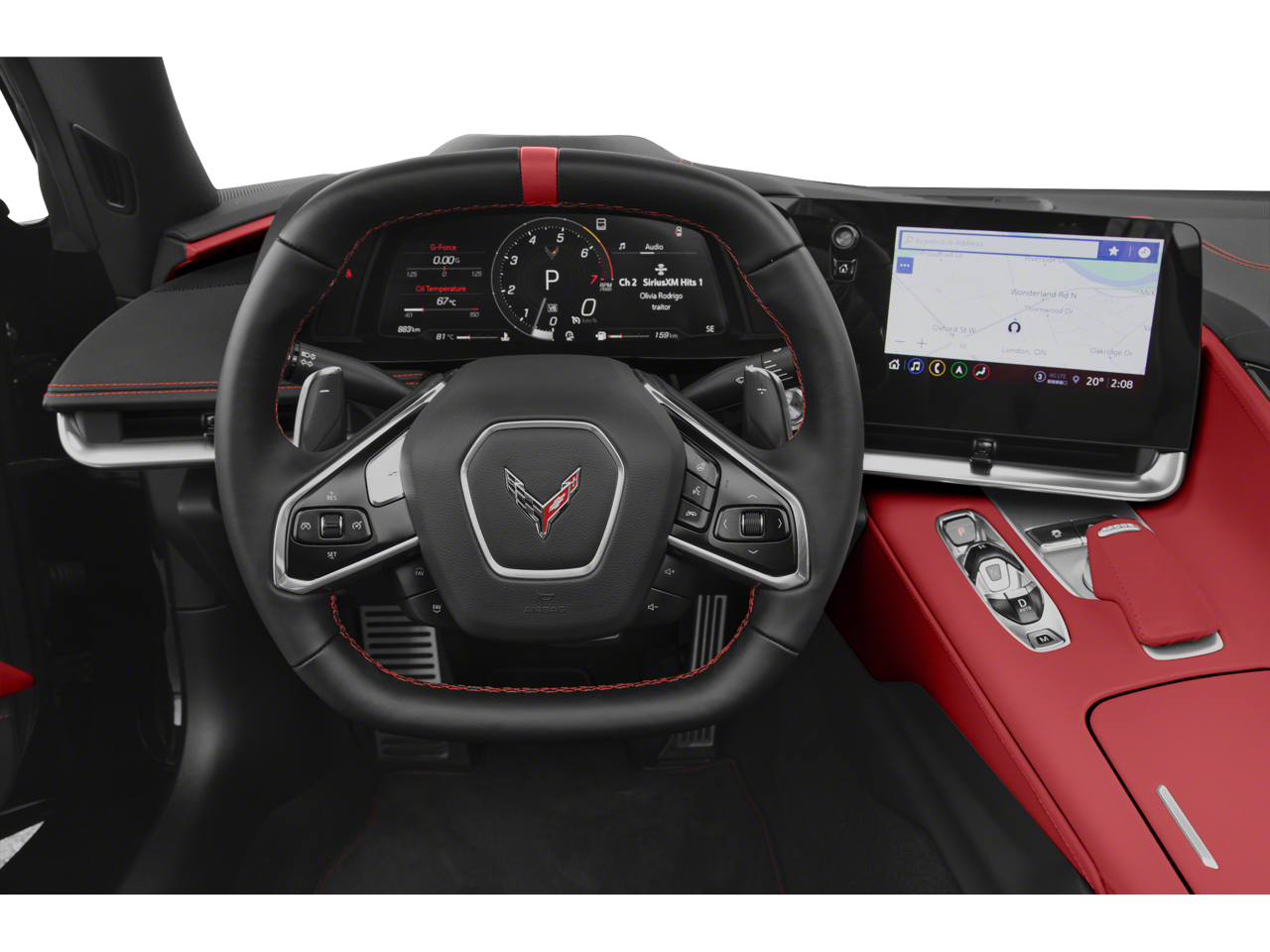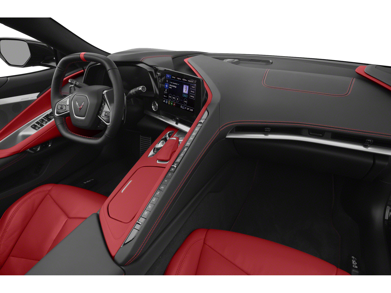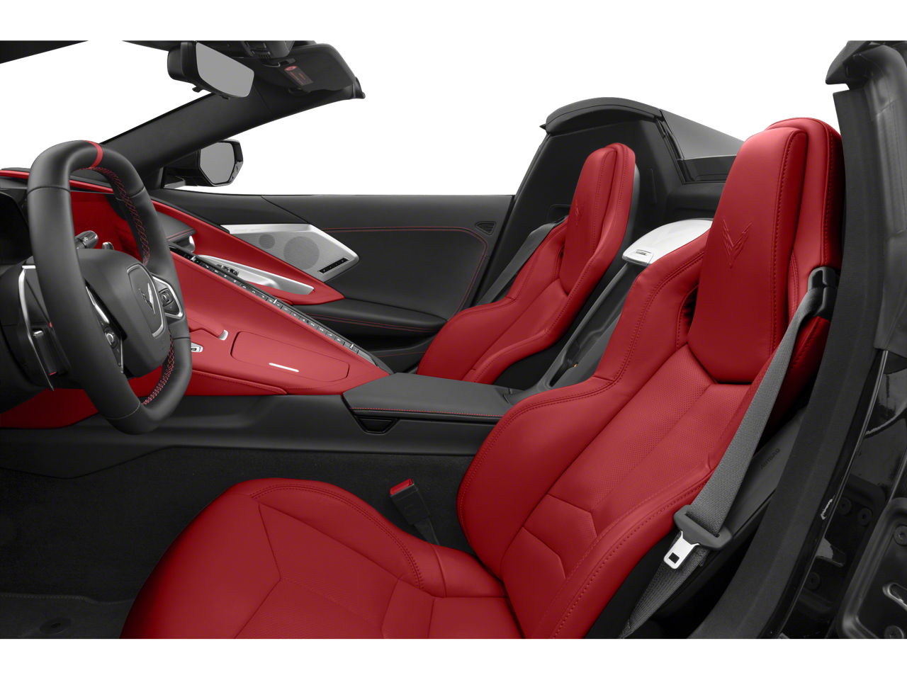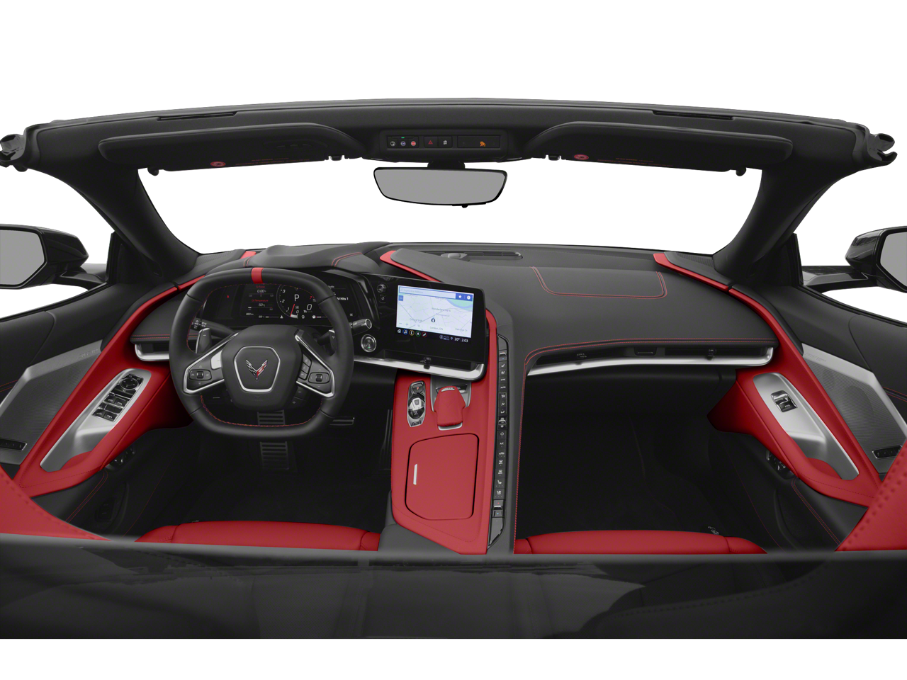 This Corvette is well equipped with Carbon Flash Metallic Painted Outside Mirrors (Carbon Flash Metallic-Painted Outside Mirrors), Custom Leather Wrapped Interior Package, Memory Driver & Passenger Convenience Package, Preferred Equipment Group 3LT (2 Cargo Nets, Driver Power Bolster Seat Adjuster, Electrical Theft Deterrent System, HD Front & Rear Vision Cameras, Head-Up Display, Heated & Vented Driver & Passenger Seats, Heated Steering Wheel, Passenger Power Bolster Seat Adjuster, Performance Data & Video Recorder, Power Driver Lumbar Control Seat Adjuster, Power Passenger Lumbar Control Seat Adjuster, Power-Adjustable Outside Heated Mirrors, Rear Cross Traffic Alert, Side Blind Zone Alert, Sueded Microfiber-Wrapped Upper Interior Trim Pkg, Universal Home Remote, Vehicle Inclination Theft Deterrent Sensor, Vehicle Interior Movement Theft Deterrent Sensor, and Wireless Charging for Devices), Z51 Performance Package (Electronic Limited-Slip Differential, Heavy-Duty Cooling System, Performance Exhaust w/Stainless-Steel Tips, Performance Rear Axle Ratio, Rear Z51 Spoiler, Z51 Performance Brakes, and Z51 Performance Suspension), 14 Speakers, 2-Tone Seats, 4-Wheel Disc Brakes, 8-Way Power Driver Seat Adjuster, 8-Way Power Passenger Seat Adjuster, ABS brakes, Air Conditioning, All-Weather Floor Liners w/Jake Logo (LPO), Alloy wheels, AM/FM radio: SiriusXM, Auto-dimming door mirrors, Auto-dimming Rear-View mirror, Automatic temperature control, Black Lug Nuts (LPO), Black Wheel Center Caps w/Gray Stingray Logo (LPO), Black Wheel Locks (LPO), Bose Performance Series Sound System w/14 Speakers, Brake assist, Bright Red-Painted Calipers, Bumpers: body-color, Compass, Convertible HardTop, Convertible roof lining, Convertible Top w/Carbon Flash Nacelles & Roof, Delay-off headlights, Driver door bin, Driver vanity mirror, Dual front impact airbags, Dual front side impact airbags, Electronic Stability Control, Emergency communication system: OnStar and Chevrolet connected services capable, Four wheel independent suspension, Front anti-roll bar, Front Bucket Seats, Front Center Armrest, Front dual zone A/C, Front Lift Adjustable Height w/Memory, Front reading lights, Fully automatic headlights, Garage door transmitter, Glass rear window, GT2 Bucket Seats, HD Radio, Heads-Up Display, Heated door mirrors, Heated front seats, Heated steering wheel, Illuminated entry, Integrated roll-over protection, Leather Shift Knob, Leather steering wheel, Low tire pressure warning, Memory seat, Napa Lthr Seating Surfaces w/Perforated Inserts, Navigation System, Occupant sensing airbag, Outside temperature display, Overhead console, Panic alarm, Passenger door bin, Passenger vanity mirror, Performance Traction Management, Personalized Plaque, Power convertible roof, Power door mirrors, Power driver seat, Power passenger seat, Power steering, Power windows, Radio data system, Radio: Chevrolet Infotainment 3 Premium System, Rear anti-roll bar, Rear Parking Sensors, Rear window defroster, Remote keyless entry, Security system, SiriusXM Radio, Speed control, Speed-sensing steering, Sport steering wheel, Steering wheel memory, Steering wheel mounted audio controls, Tachometer, Telescoping steering wheel, Tilt steering wheel, Traction control, Trip computer, Turn signal indicator mirrors, Variably intermittent wipers, Ventilated front seats, Voltmeter, Wheels: 19" x 8.5" Fr/20" x 11" Rr Bright Silver, Wheels: 19" x 8.5" Fr/20" x 11" Rr Carbon Flash, Wireless Apple CarPlay/Wireless Android Auto, and Z51 Perf Suspension w/Magnetic Selective Ride Cntrl.