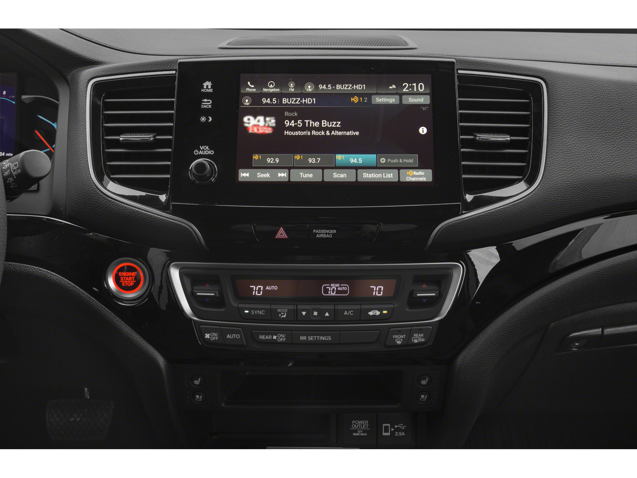 This Passport is well equipped with 10 Speakers, 4-Wheel Disc Brakes, 4.334 Axle Ratio, A/V remote: CabinControl, ABS brakes, Air Conditioning, Alloy wheels, AM/FM radio: SiriusXM, Apple CarPlay/Android Auto, Auto High-beam Headlights, Auto-dimming door mirrors, Auto-dimming Rear-View mirror, Automatic temperature control, Blind Spot Information (BSI) System warning, Brake assist, Bumpers: body-color, Compass, Delay-off headlights, Driver door bin, Driver vanity mirror, Driver's Seat Mounted Armrest, Dual front impact airbags, Dual front side impact airbags, Electronic Stability Control, Emergency communication system: HondaLink, Exterior Parking Camera Rear, Forward collision: Collision Mitigation Braking System (CMBS) + FCW mitigation, Four wheel independent suspension, Front anti-roll bar, Front Bucket Seats, Front Center Armrest, Front dual zone A/C, Front fog lights, Front reading lights, Fully automatic headlights, Garage door transmitter: HomeLink, Heated & Ventilated Front Bucket Seats, Heated door mirrors, Heated front seats, Heated rear seats, Heated steering wheel, Illuminated entry, Lane departure: Lane Keeping Assist System (LKAS) active, Low tire pressure warning, Memory seat, Navigation system: Honda Satellite-Linked Navigation System, Occupant sensing airbag, Outside temperature display, Overhead airbag, Overhead console, Panic alarm, Passenger door bin, Passenger seat mounted armrest, Passenger vanity mirror, Perforated Leather-Trimmed Seats, Power door mirrors, Power driver seat, Power Liftgate, Power moonroof, Power passenger seat, Power steering, Power windows, Radio data system, Radio: 540-Watt Premium Audio System w/10 Speakers, Rain sensing wipers, Rear air conditioning, Rear anti-roll bar, Rear reading lights, Rear seat center armrest, Rear window defroster, Rear window wiper, Remote keyless entry, Roof rack: rails only, Security system, Speed control, Speed-sensing steering, Split folding rear seat, Spoiler, Steering wheel mounted audio controls, Tachometer, Telescoping steering wheel, Tilt steering wheel, Traction control, Trip computer, Turn signal indicator mirrors, Variably intermittent wipers, Ventilated front seats, and Wheels: 20" Solid-Spoke Gloss Black Alloy.