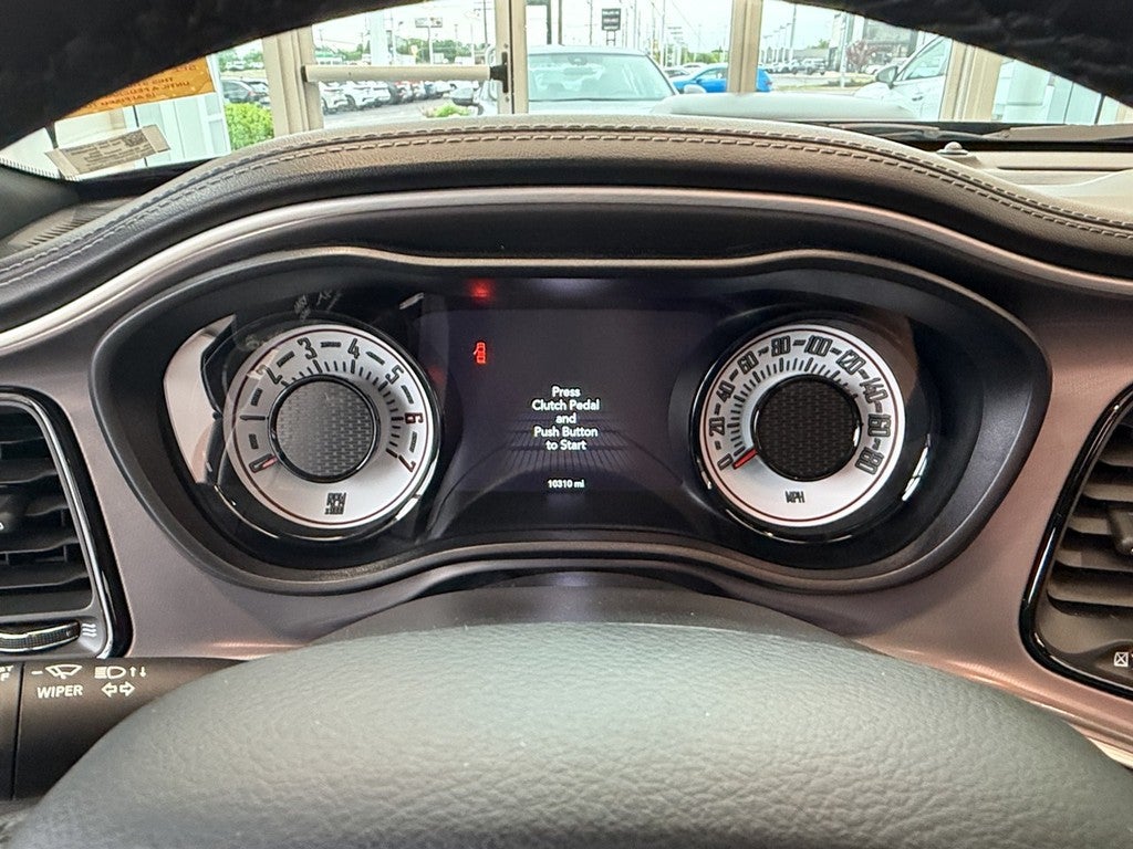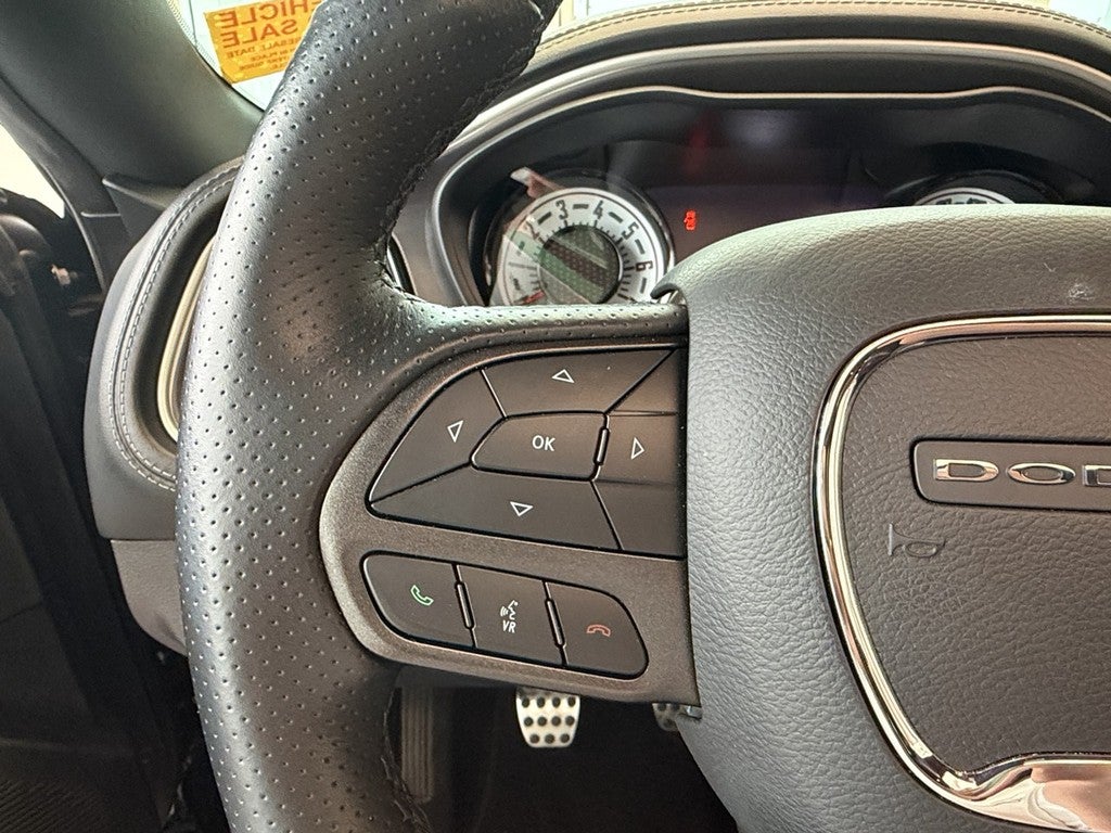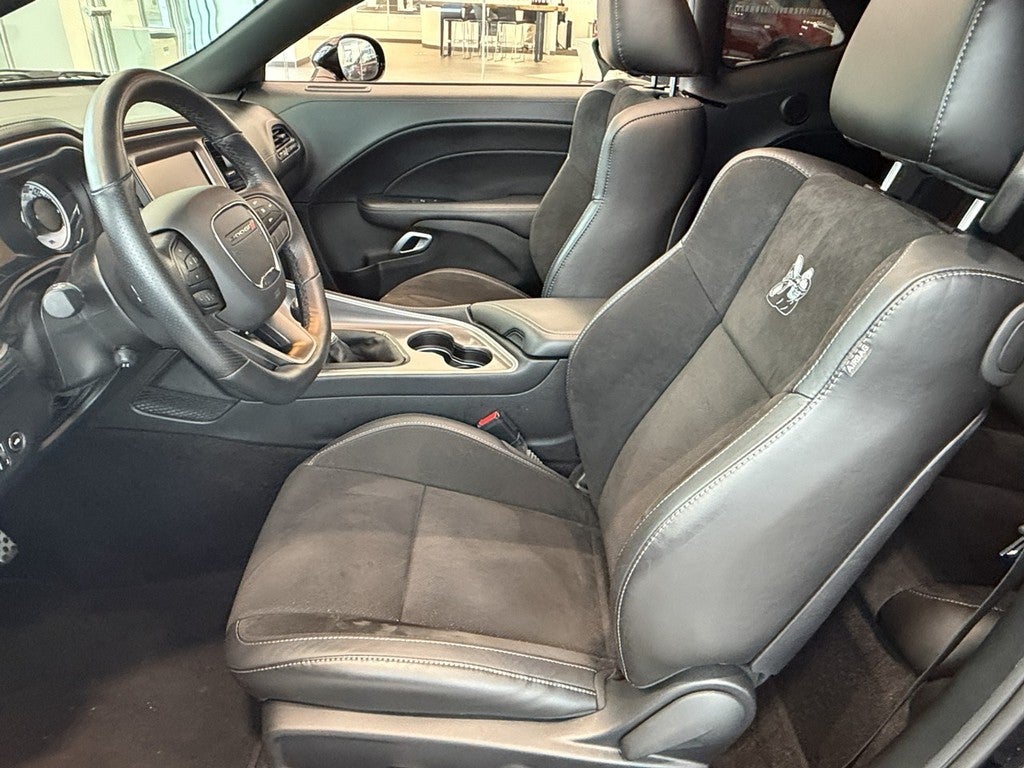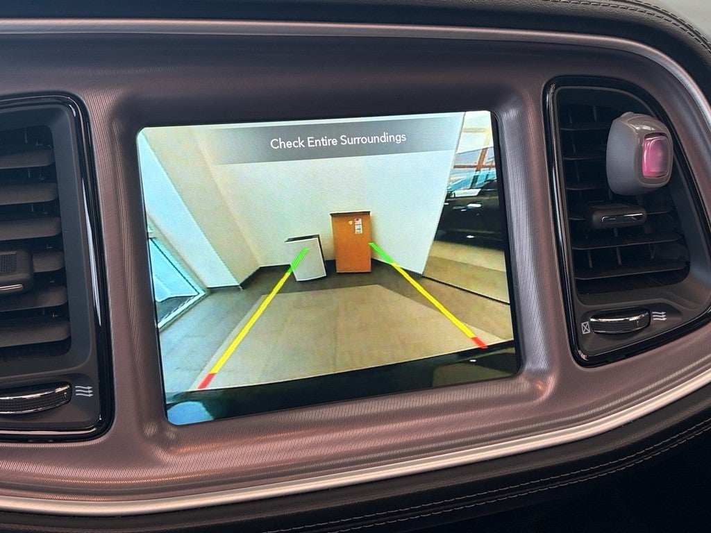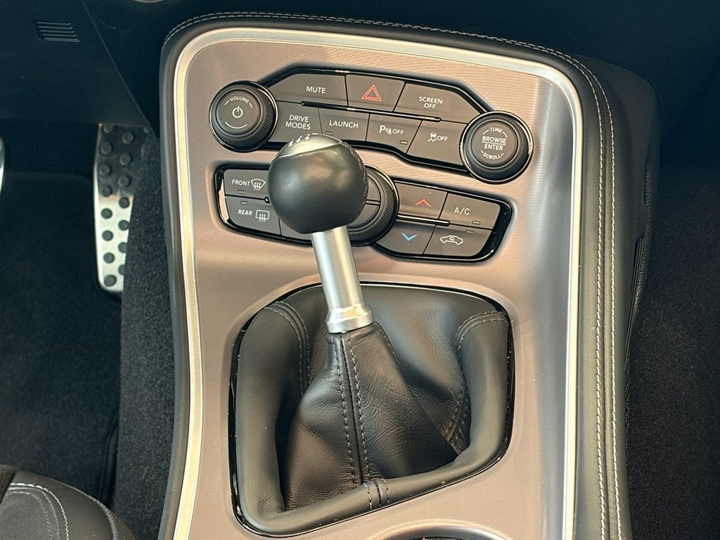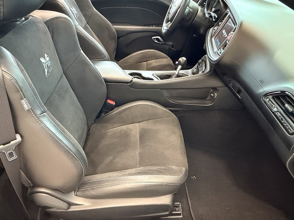 This Challenger is well equipped with Alpine Audio Group w/Subwoofer (506 Watt Amplifier, 9 Amplified Speakers w/Subwoofer, and Surround Sound), Driver Convenience Group (Blind Spot & Cross Path Detection, Body Color Exterior Mirrors, Exterior Mirrors w/Heating Element, High-Intensity Discharge Headlamps, and Power Multi-Function Foldaway Mirrors), Plus Package (Door Trim Panel w/Ambient Lighting and Premium-Stitched Dash Panel), Quick Order Package 23N R/T Scat Pack Widebody (Adaptive Damping Suspension, Brembo 6-Pot Fixed Front Caliper Brakes, Flat-Bottom Steering Wheel, Performance Shift Indicator, Rhombi 2-Pc Wheel Center Cap, Wheels: 20" x 11.0" Devil's Rim Granite, Widebody Competition Suspension, and Widebody Fender Flares), Shaker Package (Bee Fender Badge, Dash Plaque, Gloss Black I/P Cluster Trim Rings, MOPAR Shaker Hood, MOPAR Shaker Intake, Shaker Mounted 392 HEMI Badge, Underhood Shaker Decal, and White Face Instrument Cluster), 1-Yr SiriusXM Guardian Trial, 4-Wheel Disc Brakes, 6 Speakers, ABS brakes, Air Conditioning, Alloy wheels, AM/FM radio: SiriusXM, Anti-whiplash front head restraints, Apple CarPlay, Apple CarPlay/Android Auto, Auto-dimming Rear-View mirror, Automatic temperature control, Brake assist, Bumpers: body-color, Compass, Compass Gauge, Delay-off headlights, Driver door bin, Driver vanity mirror, Dual front impact airbags, Dual front side impact airbags, Electronic Stability Control, Emergency communication system: SiriusXM Guardian, For Details, Visit DriveUconnect.com, Four wheel independent suspension, Front anti-roll bar, Front Bucket Seats, Front Center Armrest, Front dual zone A/C, Front fog lights, Front License Plate Bracket, Front reading lights, Fully automatic headlights, Garage door transmitter, Google Android Auto, GPS Antenna Input, Heated door mirrors, Heated front seats, Heated steering wheel, Illuminated entry, Integrated Center Stack Radio, Integrated Voice Command w/Bluetooth®, Leather Shift Knob, Low tire pressure warning, Media Hub (2 USB, AUX), Outside temperature display, Overhead airbag, Overhead console, Panic alarm, ParkView Rear Back-Up Camera, Passenger door bin, Passenger vanity mirror, Power door mirrors, Power driver seat, Power steering, Power Sunroof, Power windows, Radio data system, Radio: Uconnect 4C w/8.4" Display, Rear anti-roll bar, Rear reading lights, Rear seat center armrest, Rear window defroster, Red Brake Calipers, Remote keyless entry, Scat Pack Logo Houndstooth Seat, Security system, SiriusXM Satellite Radio, Speed control, Speed-sensing steering, Split folding rear seat, Spoiler, Sport steering wheel, SRT Performance Spoiler, Steering wheel mounted audio controls, Tachometer, Telescoping steering wheel, Tilt steering wheel, Traction control, Trip computer, USB Host Flip, Variably intermittent wipers, Wheels: 20" x 11.0" Carbon Black Aluminum, and W