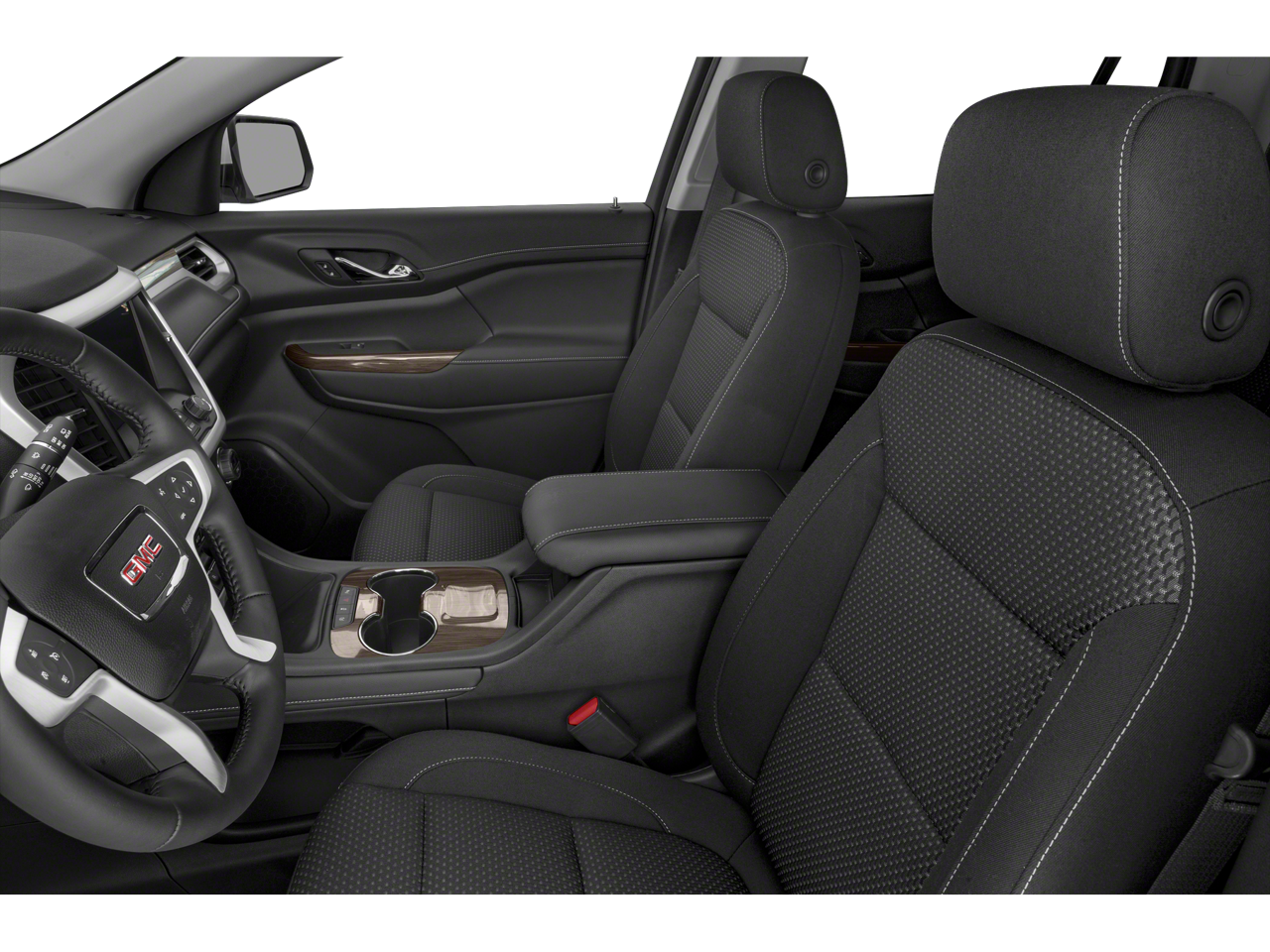 This Acadia is well equipped with Elevation Edition (20" Machined Aluminum Wheels and Gloss Black Roof Rails), Preferred Equipment Group 3SA, AWD, Jet Black Cloth, 3.47 Final Drive Axle Ratio, 3rd row seats: split-bench, 4-Way Manual Driver Seat Adjuster, 4-Way Manual Passenger Seat Adjuster, 4-Wheel Disc Brakes, 6 Speakers, 6-Passenger (2-2-2 Seating Configuration), 6-Speaker Audio System Feature, ABS brakes, Air Conditioning, Alloy wheels, AM/FM radio: SiriusXM, Apple CarPlay/Android Auto, Auto High-beam Headlights, Automatic temperature control, Brake assist, Bumpers: body-color, Compass, Delay-off headlights, Driver door bin, Driver vanity mirror, Dual front impact airbags, Dual front side impact airbags, Electronic Stability Control, Emergency communication system: OnStar and GMC Connected Services capable, Four wheel independent suspension, Front anti-roll bar, Front Bucket Seats, Front Center Armrest, Front dual zone A/C, Front License Plate Bracket, Front reading lights, Fully automatic headlights, Heated door mirrors, Illuminated entry, Knee airbag, Low tire pressure warning, Not Equipped w/Front & Rear Park Assist, Occupant sensing airbag, Outside temperature display, Overhead airbag, Overhead console, Panic alarm, Passenger door bin, Passenger vanity mirror, Power door mirrors, Power steering, Power windows, Premium audio system: GMC Infotainment System, Premium Cloth Seat Trim, Radio data system, Radio: AM/FM w/8" Diagonal Multi-Touch Display, Rear air conditioning, Rear anti-roll bar, Rear reading lights, Rear window defroster, Rear window wiper, Remote keyless entry, Security system, SiriusXM Radio, Speed control, Speed-sensing steering, Spoiler, Steering wheel mounted audio controls, Tachometer, Telescoping steering wheel, Tilt steering wheel, Traction control, Trip computer, Turn signal indicator mirrors, Variably intermittent wipers, Voltmeter, Wheels: 18" Machined Aluminum w/Dark Accents, and Wireless Apple CarPlay/Wireless Android Auto.