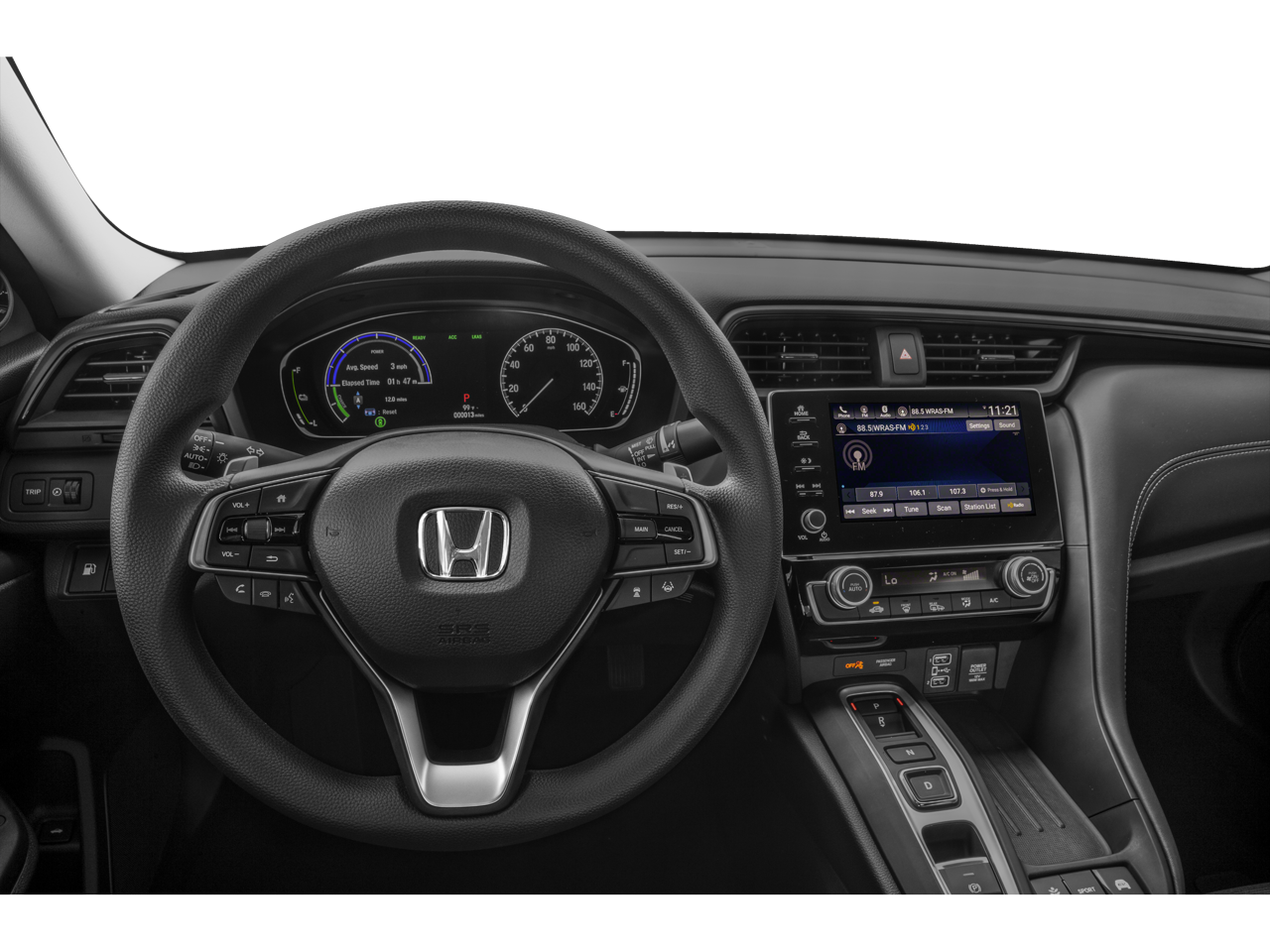 This Insight is well equipped with eCVT, 16" Aluminum Alloy Wheels, 4-Wheel Disc Brakes, 8 Speakers, ABS brakes, Adaptive Cruise Control: Adaptive Cruise Control (ACC) with Low-Speed Follow, Air Conditioning, Alloy wheels, AM/FM radio: SiriusXM, Apple CarPlay/Android Auto, Auto High-beam Headlights, Automatic temperature control, Blind Spot Information (BSI) System warning, Brake assist, Bumpers: body-color, Delay-off headlights, Driver door bin, Driver vanity mirror, Dual front impact airbags, Dual front side impact airbags, Electronic Stability Control, Emergency communication system: HondaLink Assist, Exterior Parking Camera Rear, Fabric Seat Trim, Forward collision: Collision Mitigation Braking System (CMBS) + FCW mitigation, Four wheel independent suspension, Front anti-roll bar, Front Bucket Seats, Front Center Armrest, Front reading lights, Fully automatic headlights, Heated door mirrors, Illuminated entry, Lane departure: Lane Keeping Assist System (LKAS) active, Low tire pressure warning, Occupant sensing airbag, Outside temperature display, Overhead airbag, Overhead console, Panic alarm, Passenger door bin, Passenger vanity mirror, Power door mirrors, Power steering, Power windows, Radio data system, Radio: 180-Watt Audio System w/8 Speakers, Rear anti-roll bar, Rear seat center armrest, Rear window defroster, Remote keyless entry, Security system, Speed control, Speed-sensing steering, Speed-Sensitive Wipers, Split folding rear seat, Steering wheel mounted audio controls, Telescoping steering wheel, Tilt steering wheel, Traction control, Trip computer, and Variably intermittent wipers.