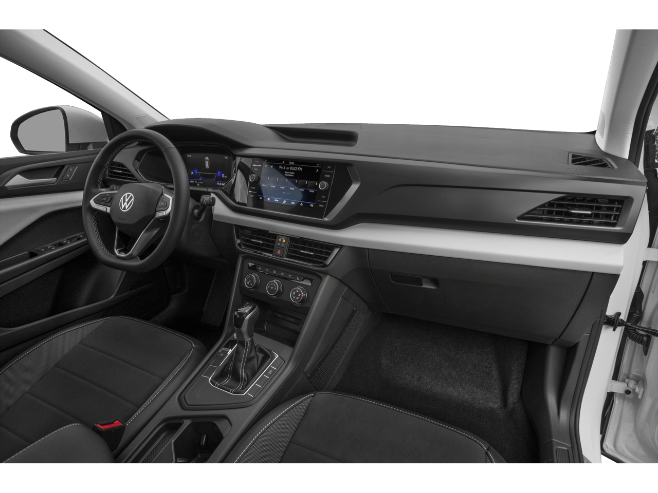 This Taos is well equipped with 4-Wheel Disc Brakes, 6 Speakers, ABS brakes, Air Conditioning, Alloy wheels, AM/FM radio: SiriusXM with 360L, Brake assist, Bumpers: body-color, CloudTex & Cloth Seating Surfaces, Compass, Delay-off headlights, Driver door bin, Driver vanity mirror, Dual front impact airbags, Dual front side impact airbags, Electronic Stability Control, Emergency communication system: Car-Net, Exterior Parking Camera Rear, Front anti-roll bar, Front Assist, Front Bucket Seats, Front Center Armrest, Front reading lights, Fully automatic headlights, Heated door mirrors, Heated Front Comfort Seats, Heated front seats, Illuminated entry, Leather Shift Knob, Low tire pressure warning, Occupant sensing airbag, Outside temperature display, Overhead airbag, Overhead console, Panic alarm, Passenger door bin, Passenger vanity mirror, Power door mirrors, Power driver seat, Power steering, Power windows, Radio data system, Radio: MIB3 Composition Media AM/FM/HD, Rear anti-roll bar, Rear seat center armrest, Rear Traffic Alert, Rear window defroster, Rear window wiper, Remote keyless entry, Roof rack: rails only, Security system, Speed control, Speed-sensing steering, Split folding rear seat, Spoiler, Steering wheel mounted audio controls, Tachometer, Telescoping steering wheel, Tilt steering wheel, Traction control, Trip computer, Variably intermittent wipers, and Wheels: 18" 2-Tone Machined Alloy.