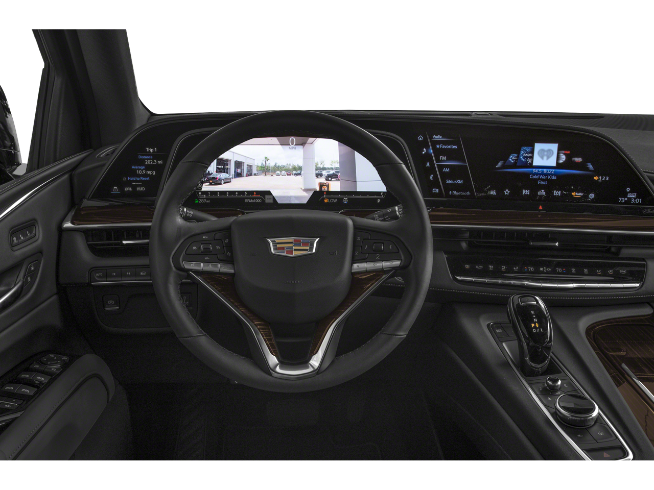 This Escalade ESV is well equipped with Preferred Equipment Group 1SB (Adaptive Cruise Control, AKG Studio 19-Speaker Audio System, Automatic Seat Belt Tightening, Door Lock & Latch Shields, Enhanced Automatic Emergency Braking, Enhanced Automatic Parking Assist, Glass Breakage Sensor, Heated & Ventilated Driver & Front Passenger Seats, Lane Change Alert w/Side Blind Zone Alert, Mechanical Limited-Slip Differential, Power Panoramic Tilt-Sliding Sunroof, Rear Camera Mirror, Rear Camera Mirror Washer, Rear Cross Traffic Alert, Reconfigurable Full-Color Head-Up Display, Reverse Automatic Braking, Running Board Assist Steps, Theft-Deterrent Alarm System, Vehicle Inclination Sensor, and Vehicle Interior Movement Sensor), AWD, 16.9" Diagonal OLED Infotainment Screen, 19 Speakers, 2-Presets Memory For Driver Seat Adjuster, 3 Years of OnStar & Connected Services Plan, 3.23 Axle Ratio, 3rd row seats: split-bench, 4-Way Power Driver Lumbar Seat Adjuster, 4-Way Power Front Passenger Lumbar Seat Adjuster, 4-Wheel Disc Brakes, 8-Way Power Driver Seat Adjuster, 8-Way Power Front Passenger Seat Adjuster, ABS brakes, Air Conditioning, Alloy wheels, AM/FM radio: SiriusXM with 360L, Apple CarPlay/Android Auto, Audio memory, Auto High-beam Headlights, Auto tilt-away steering wheel, Auto-dimming door mirrors, Automatic temperature control, Brake assist, Bumpers: body-color, Compass, Delay-off headlights, Driver door bin, Driver vanity mirror, Dual front impact airbags, Dual front side impact airbags, Electronic Stability Control, Emergency communication system: OnStar and Cadillac connected services capable, Exterior Parking Camera Rear, Four wheel independent suspension, Front anti-roll bar, Front Bucket Seats, Front Center Armrest w/Storage, Front dual zone A/C, Front License Plate Bracket, Front reading lights, Fully automatic headlights, Garage door transmitter, HD Radio, Heads-Up Display, Heated door mirrors, Heated Driver & Front Passenger Seats, Heated front seats, Heated rear seats, Heated steering wheel, Illuminated entry, Leather Seating Surfaces w/Mini-Chevron Perf Inserts, Low tire pressure warning, Memory seat, Navigation System, Not Equipped w/2nd Row Express-Up Window Control, Not Equipped w/Wheel Locks (LPO), Occupant sensing airbag, Outside temperature display, Overhead airbag, Overhead console, Panic alarm, Passenger door bin, Passenger vanity mirror, Power door mirrors, Power driver seat, Power Liftgate, Power moonroof, Power passenger seat, Power steering, Power windows, Premium Smooth Ride Suspension, Puddle Lamps w/Cadillac Crest (LPO), Radio data system, Radio: AM/FM w/Navigation, Rain sensing wipers, Rear air conditioning, Rear anti-roll bar, Rear reading lights, Rear window defroster, Rear window wiper, Remote keyless entry, Security system, SiriusXM w/360L, Speed control, Split folding rear seat, Spoiler, Steering wheel memory, Steering wheel mounted audio controls, Super Cruise, Tachometer, Teen Driver, Telescoping steering wheel, Tilt steering wheel, Traction control, Trip computer, Turn signal indicator mirrors, Variably intermittent wipers, Ventilated front seats, Voltmeter, Wheel Locks, Wheels: 22" 14-Spoke Alloy w/Polished Finish, and Wireless Apple CarPlay/Wireless Android Auto.
