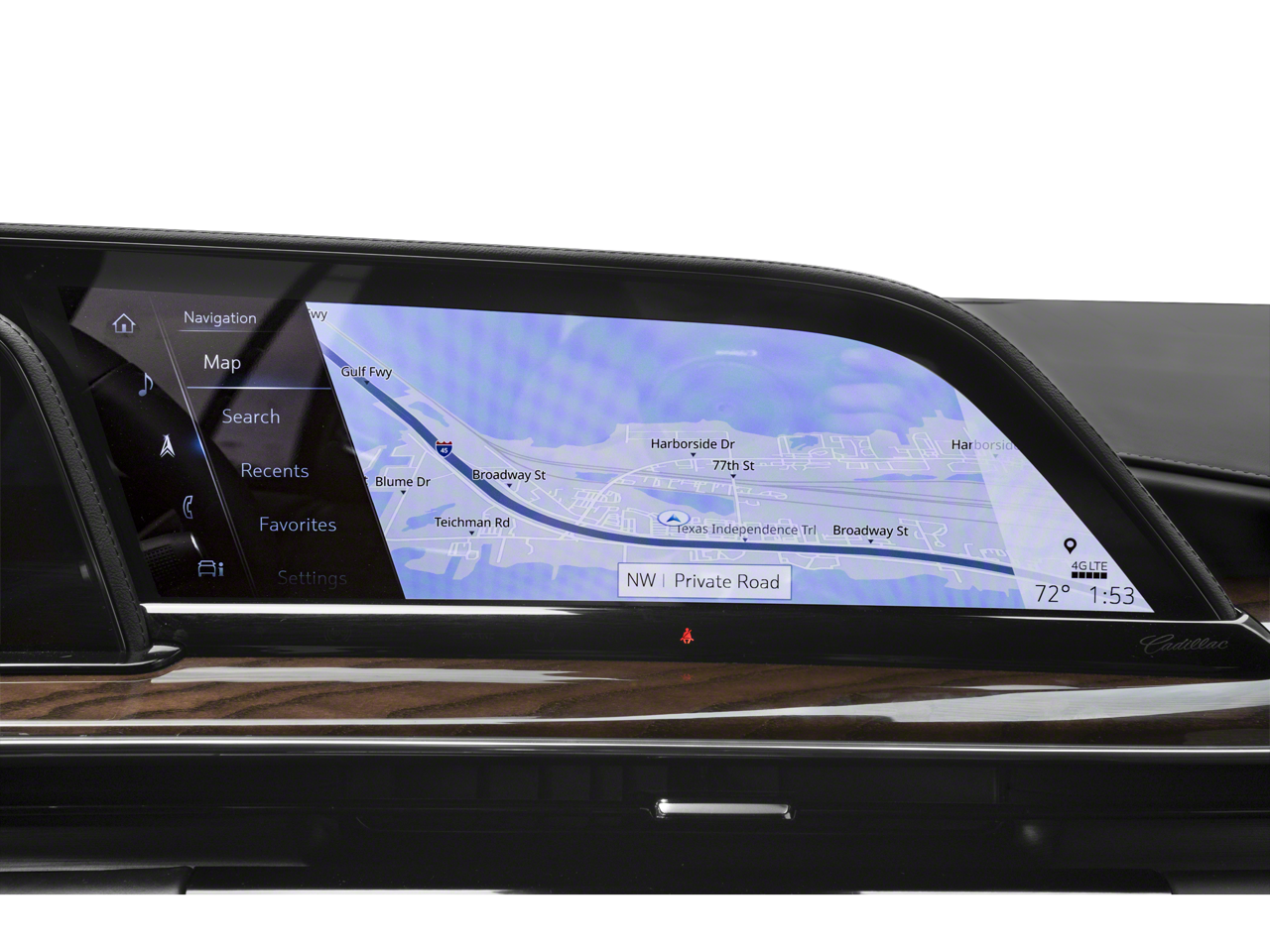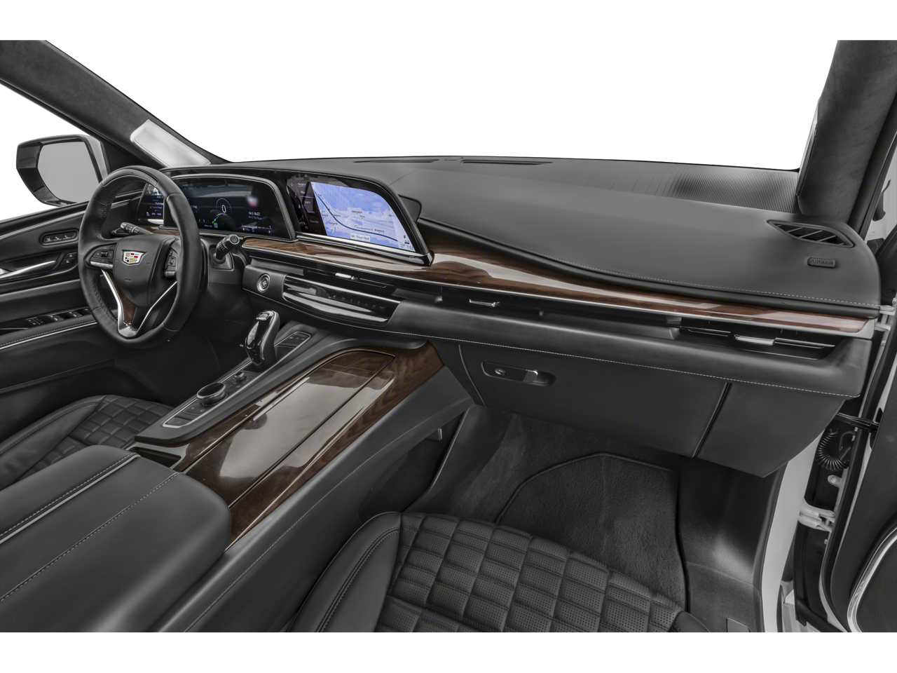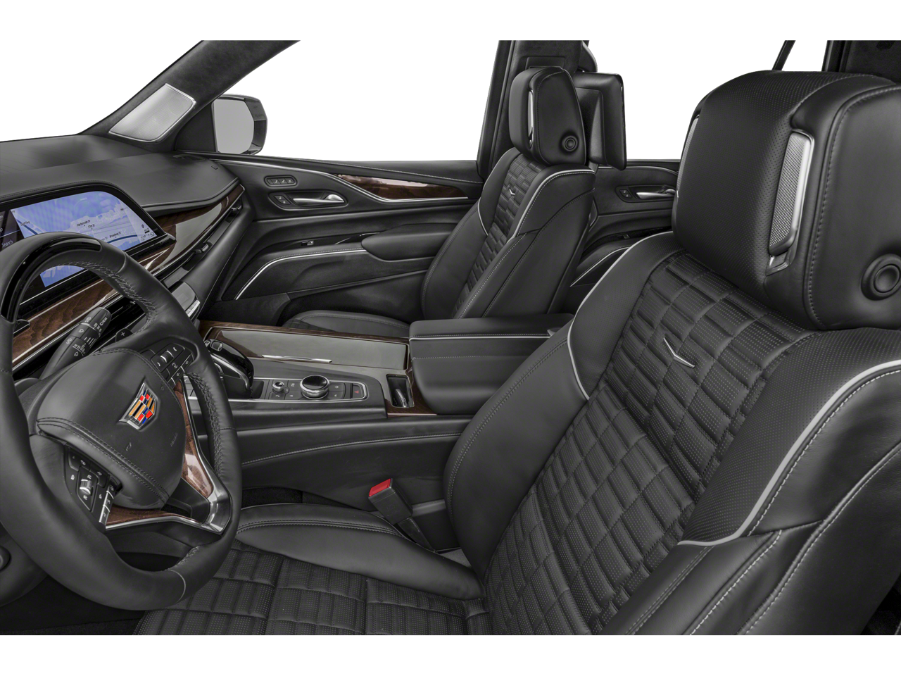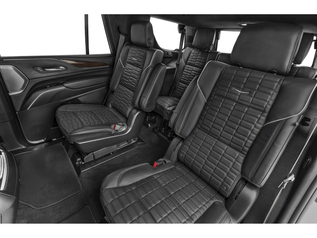 This Escalade is well equipped with All-Weather Floor Liner Package (LPO), Floor Liner Package (LPO) (All-Weather Integrated Cargo Liner (LPO)), Onyx Package (LPO) (Gloss Black Escalade Nameplate (LPO), Monochrome Cadillac Emblems (LPO), Wheels: 22" 12-Spoke Gloss Black Alloy (LPO), and Wheels: 22" Interim (LPO)), Preferred Equipment Group 1SH (Adaptive Cruise Control, AKG Studio Reference 36-Speaker Audio System, Automatic Seat Belt Tightening, Body-Color Door Handles, Door Lock & Latch Shields, Electronic Limited-Slip Differential, Enhanced Automatic Emergency Braking, Enhanced Automatic Parking Assist, Floor Console w/Covered Storage, Front Auxiliary 12-volt Power Outlet, Glass Breakage Sensor, Heated & Ventilated Driver & Front Passenger Seats, Hitch Guidance w/Hitch View, Integrated Trailer Brake Controller, Platinum Interior Trim, Power Lumbar Massage Driver Seat, Power Lumbar Massage Front Passenger Seat, Power Panoramic Tilt-Sliding Sunroof, Rear Camera Mirror, Rear Camera Mirror Washer, Rear Cross Traffic Alert, Rear Seat Entertainment System, Reconfigurable Full-Color Head-Up Display, Reverse Automatic Braking, Running Board Assist Steps, Smart Trailer Integration Indicator, Theft-Deterrent Alarm System, Trailer Side Blind Zone Alert, Vehicle Inclination Sensor, and Vehicle Interior Movement Sensor), Touring Package (Air Ride Adaptive Suspension, Illuminating Front & Rear Sill Plates, and Soft Closing Front & Rear Doors), AWD, Jet Black Leather, 16.9" Diagonal OLED Infotainment Screen, 2-Presets Memory For Driver Seat Adjuster, 3 Years of OnStar & Connected Services Plan, 3.23 Axle Ratio, 3rd row seats: split-bench, 4-Way Power Driver Lumbar Seat Adjuster, 4-Way Power Front Passenger Lumbar Seat Adjuster, 4-Wheel Disc Brakes, 8-Way Power Driver Seat Adjuster, 8-Way Power Front Passenger Seat Adjuster, A/V remote, ABS brakes, Adaptive suspension, Air Conditioning, Alloy wheels, AM/FM radio: SiriusXM with 360L, Apple CarPlay/Android Auto, Audio memory, Auto High-beam Headlights, Auto tilt-away steering wheel, Auto-dimming door mirrors, Auto-dimming Rear-View mirror, Automatic temperature control, Brake assist, Bumpers: body-color, Compass, Cooled Console w/Covered Storage, Delay-off headlights, Door auto-latch, Driver door bin, Driver vanity mirror, Dual front impact airbags, Dual front side impact airbags, Electronic Stability Control, Emergency communication system: OnStar and Cadillac connected services capable, Exterior Parking Camera Rear, Four wheel independent suspension, Front anti-roll bar, Front Bucket Seats, Front Center Armrest w/Storage, Front dual zone A/C, Front License Plate Bracket, Front reading lights, Full Semi-Aniline Leather Seat Trim, Fully automatic headlights, Garage door transmitter, Genuine wood console insert, Genuine wood dashboard insert, Genuine wood door panel insert, HD Radio, Headphones, Heads-Up Display, Heated door mirrors, Heated Driver & Front Passenger Seats, Heated front seats, Heated rear seats, Heated steering wheel, Illuminated entry, Leather steering wheel, Low tire pressure warning, Magnetic Ride Control Suspension, Memory seat, Navigation System, Not Equipped w/2nd Row Express-Up Window Control, Occupant sensing airbag, Outside temperature display, Overhead airbag, Overhead console, Panic alarm, Passenger door bin, Passenger vanity mirror, Power door mirrors, Power driver seat, Power Liftgate, Power moonroof, Power passenger seat, Power steering, Power windows, Radio data system, Radio: AM/FM w/Navigation, Rain sensing wipers, Rear air conditioning, Rear anti-roll bar, Rear audio controls, Rear reading lights, Rear window defroster, Rear window wiper, Remote keyless entry, Security system, SiriusXM w/360L, Speed control, Split folding rear seat, Spoiler, Steering wheel memory, Steering wheel mounted audio controls, Super