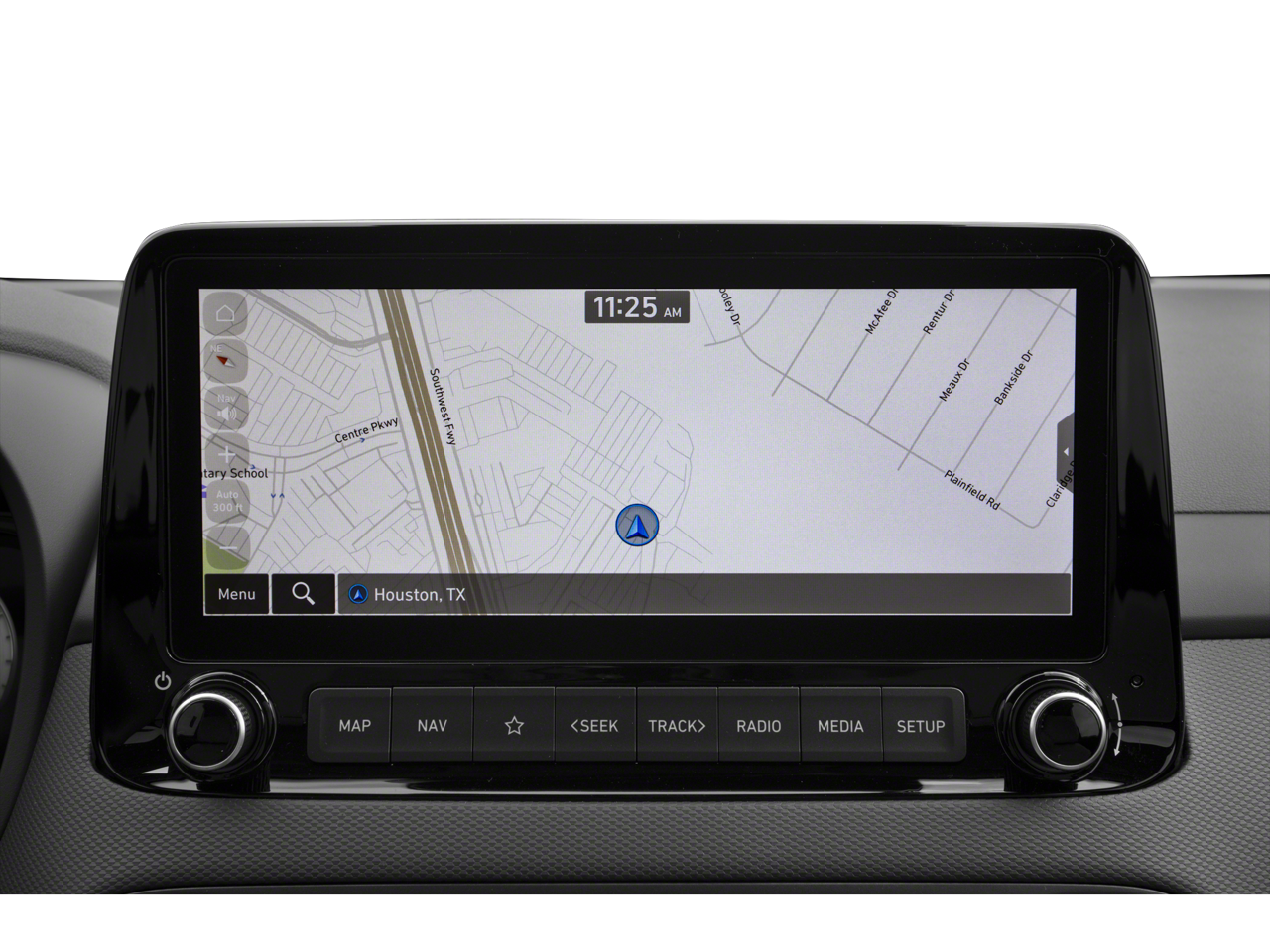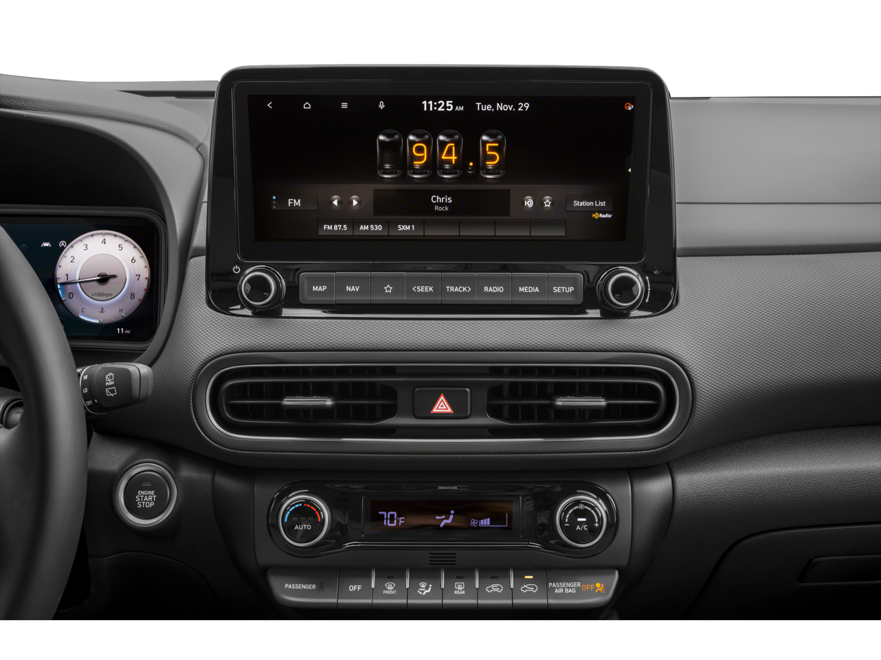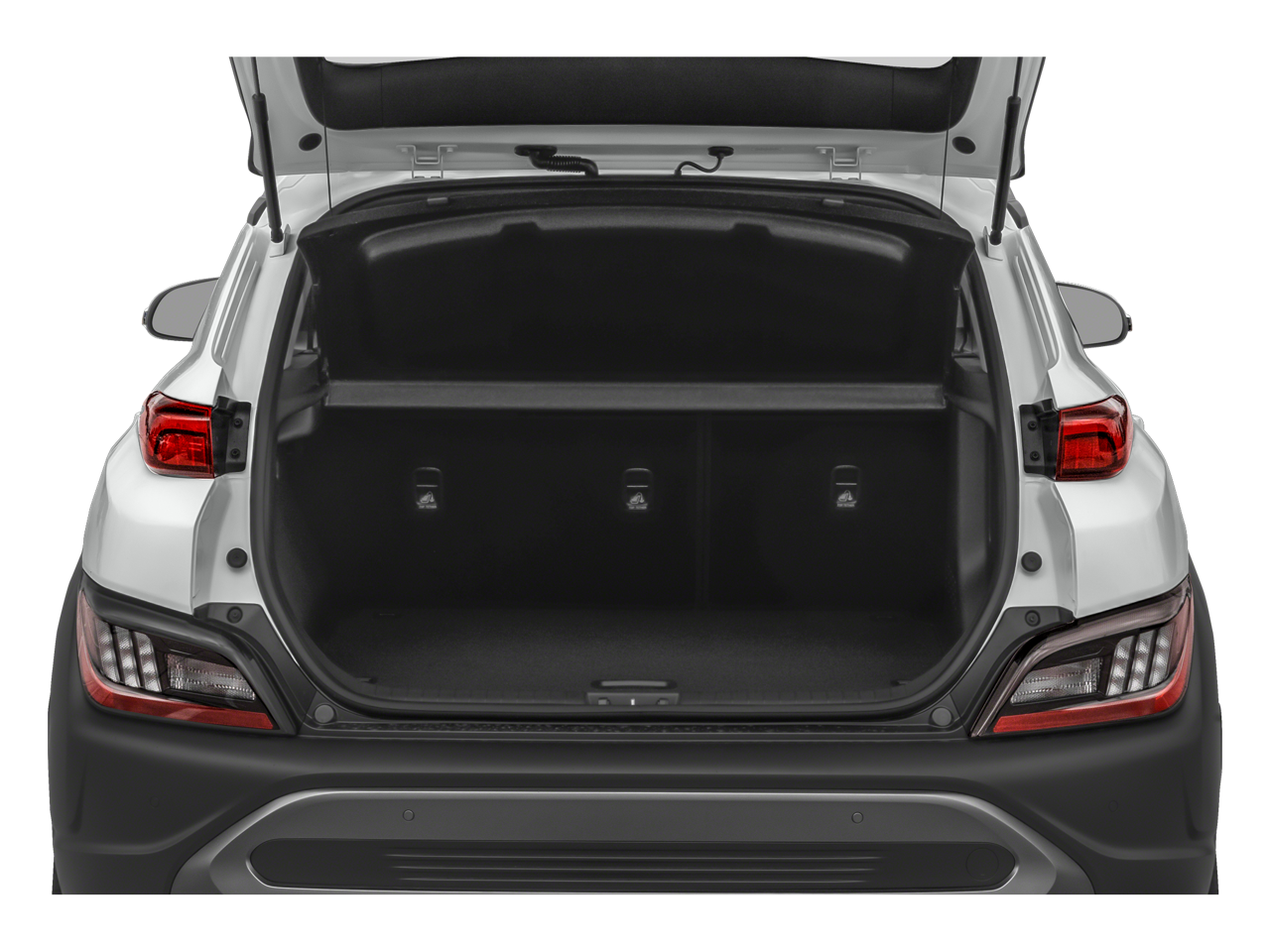 This Kona is well equipped with Cargo Package (Cargo Blocks, Cargo Net, and Cargo Tray), Option Group 01, 18" x 7.5J Alloy Wheels, 3.174 Axle Ratio, 4-Wheel Disc Brakes, 8 Speakers, ABS brakes, Air Conditioning, Alloy wheels, AM/FM radio: SiriusXM, Apple CarPlay & Android Auto, Auto High-beam Headlights, Auto-dimming Rear-View mirror, Automatic temperature control, Brake assist, Bumpers: body-color, Carpeted Floor Mats, Delay-off headlights, Driver door bin, Driver vanity mirror, Dual front impact airbags, Dual front side impact airbags, Electronic Stability Control, Emergency communication system: Blue Link Connected Car Service (3-year complimentary subscription), Exterior Parking Camera Rear, First Aid Kit, Four wheel independent suspension, Front anti-roll bar, Front Bucket Seats, Front Center Armrest, Front reading lights, Fully automatic headlights, Garage door transmitter: HomeLink, harman/kardon Speakers, Heated door mirrors, Heated Front Bucket Seats, Heated front seats, Illuminated entry, Leather Seat Trim, Leather Shift Knob, Leather steering wheel, Low tire pressure warning, Navigation System, Occupant sensing airbag, Outside temperature display, Overhead airbag, Overhead console, Panic alarm, Passenger door bin, Passenger vanity mirror, Power door mirrors, Power driver seat, Power moonroof, Power steering, Power windows, Radio: harman/kardon Premium Audio System, Rain sensing wipers, Rear anti-roll bar, Rear seat center armrest, Rear window defroster, Rear window wiper, Remote keyless entry, Security system, Speed control, Speed-sensing steering, Split folding rear seat, Spoiler, Steering wheel mounted audio controls, Tachometer, Telescoping steering wheel, Tilt steering wheel, Traction control, Trip computer, Turn signal indicator mirrors, Variably intermittent wipers, and Wheel Locks.