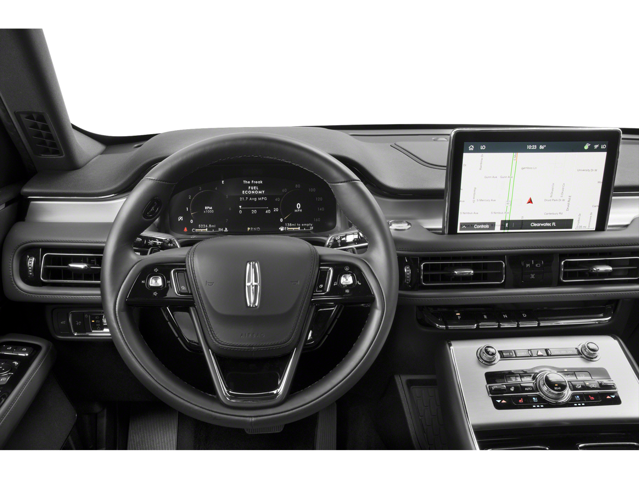 This Lincoln Aviator is well equipped with Elements Package Plus (Auto Air Refresh, Auto Heated/Ventilated Driver & Passenger Seats, Heated Steering Wheel, Heated VisioBlade Wipers, and Heated/Ventilated 2nd Row Outboard Seats), Equipment Group 201A (Head-Up Display and Phone As A Key), Illumination Package (Adaptive Pixel LED Headlamps, Illuminated Lincoln Star in Grille, and LED Fog Lamps), Lincoln Co-Pilot360 1.5 Plus (Active Park Assist 2.0, Evasive Steering Assist, Intelligent Adaptive Cruise Control, and Reverse Brake Assist), Luxury Package (30-Way Perfect Position Seats w/Active Motion, Radio: Revel Ultima 3D Audio System w/28 Speakers, and Rear Door Sunshades), 14 Speakers, 2nd Row Bench Seat, 3.58 Axle Ratio, 3rd row seats: split-bench, 4-Wheel Disc Brakes, ABS brakes, Adaptive suspension, Air Conditioning, All-Weather 1st & 2nd Row Floor Liners, Alloy wheels, AM/FM radio: SiriusXM, Audio memory, Auto High-beam Headlights, Auto-dimming door mirrors, Auto-dimming Rear-View mirror, Automatic temperature control, Brake assist, Bumpers: body-color, Compass, Delay-off headlights, Driver door bin, Driver vanity mirror, Dual front impact airbags, Dual front side impact airbags, Electronic Stability Control, Emergency communication system, Four wheel independent suspension, Front anti-roll bar, Front Bucket Seats, Front Center Armrest, Front dual zone A/C, Front License Plate Bracket, Front reading lights, Fully automatic headlights, Garage door transmitter, Hands-Free Liftgate Delete, Heated door mirrors, Heated front seats, HVAC memory, Illuminated entry, Knee airbag, Leather steering wheel, Low tire pressure warning, Memory seat, Navigation System, Occupant sensing airbag, Outside temperature display, Overhead airbag, Overhead console, Panic alarm, Passenger door bin, Passenger vanity mirror, Power door mirrors, Power driver seat, Power Liftgate, Power moonroof: Panoramic Vista Roof, Power passenger seat, Power steering, Power windows, Premium Lthr Heated/Ventilated Fnt Captain's Chairs, Radio data system, Radio: Revel AM/FM Audio System w/14 Speakers, Rain sensing wipers, Rear air conditioning, Rear anti-roll bar, Rear audio controls, Rear dual zone A/C, Rear reading lights, Rear window defroster, Rear window wiper, Remote keyless entry, Security system, SiriusXM Radio, Speed control, Speed-Sensitive Wipers, Split folding rear seat, Spoiler, Steering wheel memory, Steering wheel mounted A/C controls, Steering wheel mounted audio controls, SYNC 3 Communication & Entertainment System, Tachometer, Telescoping steering wheel, Tilt steering wheel, Traction control, Trip computer, Turn signal indicator mirrors, Variably intermittent wipers, Wheels: 20" Bright-Machined Aluminum, and Wheels: 22" Bright-Machined Aluminum.