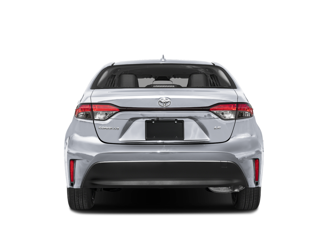 This Corolla is well equipped with 4-Wheel Disc Brakes, 6 Speakers, ABS brakes, Air Conditioning, AM/FM radio: SiriusXM, Auto High-beam Headlights, Automatic temperature control, Brake assist, Bumpers: body-color, Delay-off headlights, Driver door bin, Driver vanity mirror, Dual front impact airbags, Dual front side impact airbags, Electronic Stability Control, Emergency communication system: Safety Connect (up to 10-year trial subscription), Exterior Parking Camera Rear, Front anti-roll bar, Front Bucket Seats, Front Center Armrest, Front reading lights, Front wheel independent suspension, Fully automatic headlights, Illuminated entry, Knee airbag, Low tire pressure warning, Occupant sensing airbag, Outside temperature display, Overhead airbag, Panic alarm, Passenger door bin, Passenger vanity mirror, Power door mirrors, Power steering, Power windows, Premium Fabric Seat Trim, Radio data system, Radio: 8" Toyota Audio Multimedia, Rear anti-roll bar, Rear seat center armrest, Rear side impact airbag, Rear window defroster, Remote keyless entry, Speed control, Split folding rear seat, Steering wheel mounted audio controls, Tachometer, Telescoping steering wheel, Tilt steering wheel, Traction control, Trip computer, Variably intermittent wipers, and Wheels: 16" Wide Vent Steel.