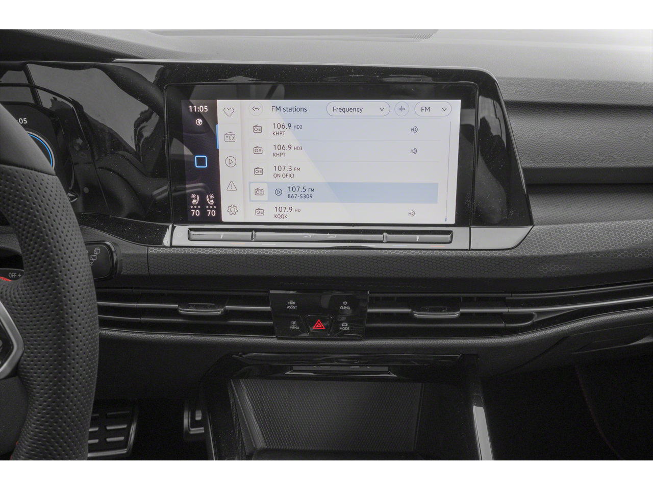 This Golf GTI is well equipped with MDO Package (Luggage Net and Rubber Mats Kit), 4-Wheel Disc Brakes, 9 Speakers, ABS brakes, Active Blind Spot Monitor, Adaptive suspension, Air Conditioning, Alloy wheels, AM/FM radio: SiriusXM with 360L, Auto High-beam Headlights, Auto-dimming Rear-View mirror, Auto-Dimming Rearview Mirror w/HomeLink Connect, Automatic temperature control, Brake assist, Bumpers: body-color, Compass, Delay-off headlights, Driver door bin, Driver vanity mirror, Dual front impact airbags, Dual front side impact airbags, Electronic Stability Control, Emergency communication system: VW Car-Net Safe & Secure 5-year, Exterior Parking Camera Rear, Forward collision: FCW w/Autonomous Emergency Braking mitigation, Four wheel independent suspension, Front anti-roll bar, Front Bucket Seats, Front Center Armrest, Front dual zone A/C, Front fog lights, Front reading lights, Fully automatic headlights, harman/kardon Speakers, Heads-Up Display, Heated & Actively Ventilated Front Top Sport Seats, Heated door mirrors, Heated front seats, Heated rear seats, Heated steering wheel, Illuminated entry, Leather steering wheel, Low tire pressure warning, Memory seat, Navigation System, Occupant sensing airbag, Outside temperature display, Overhead airbag, Overhead console, Panic alarm, Passenger door bin, Passenger vanity mirror, Perforated Vienna Leather Seating Surfaces, Power door mirrors, Power driver seat, Power moonroof: Panoramic, Power passenger seat, Power steering, Power windows, Radio data system, Radio: MIB3 Discover Pro w/10" Touchscreen Navi, Rain sensing wipers, Rear air conditioning, Rear anti-roll bar, Rear reading lights, Rear seat center armrest, Rear window defroster, Rear window wiper, Remote keyless entry, Security system, Speed control, Speed-sensing steering, Speed-Sensitive Wipers, Split folding rear seat, Spoiler, Sport steering wheel, Steering wheel mounted audio controls, Tachometer, Telescoping steering wheel, Tilt steering wheel, Traction control, Trip computer, Turn signal indicator mirrors, Variably intermittent wipers, Ventilated front seats, VW Care, and Wheels: 19" 2-Tone Diamond-Turned Alloy.