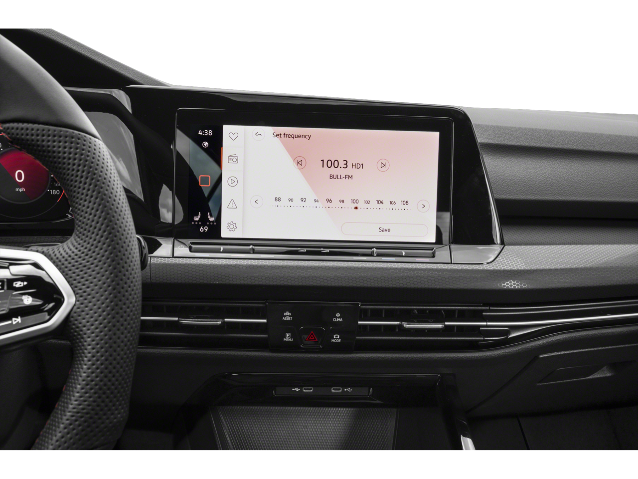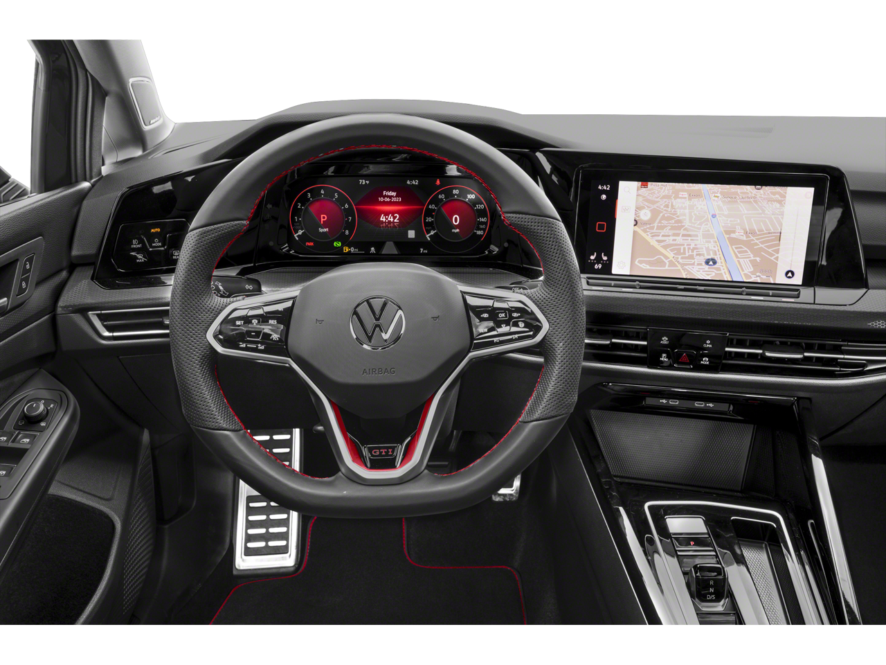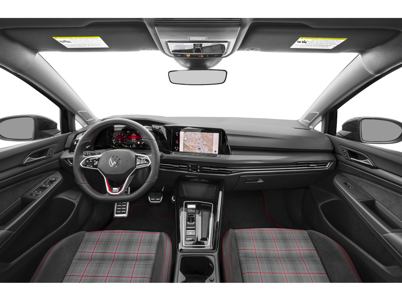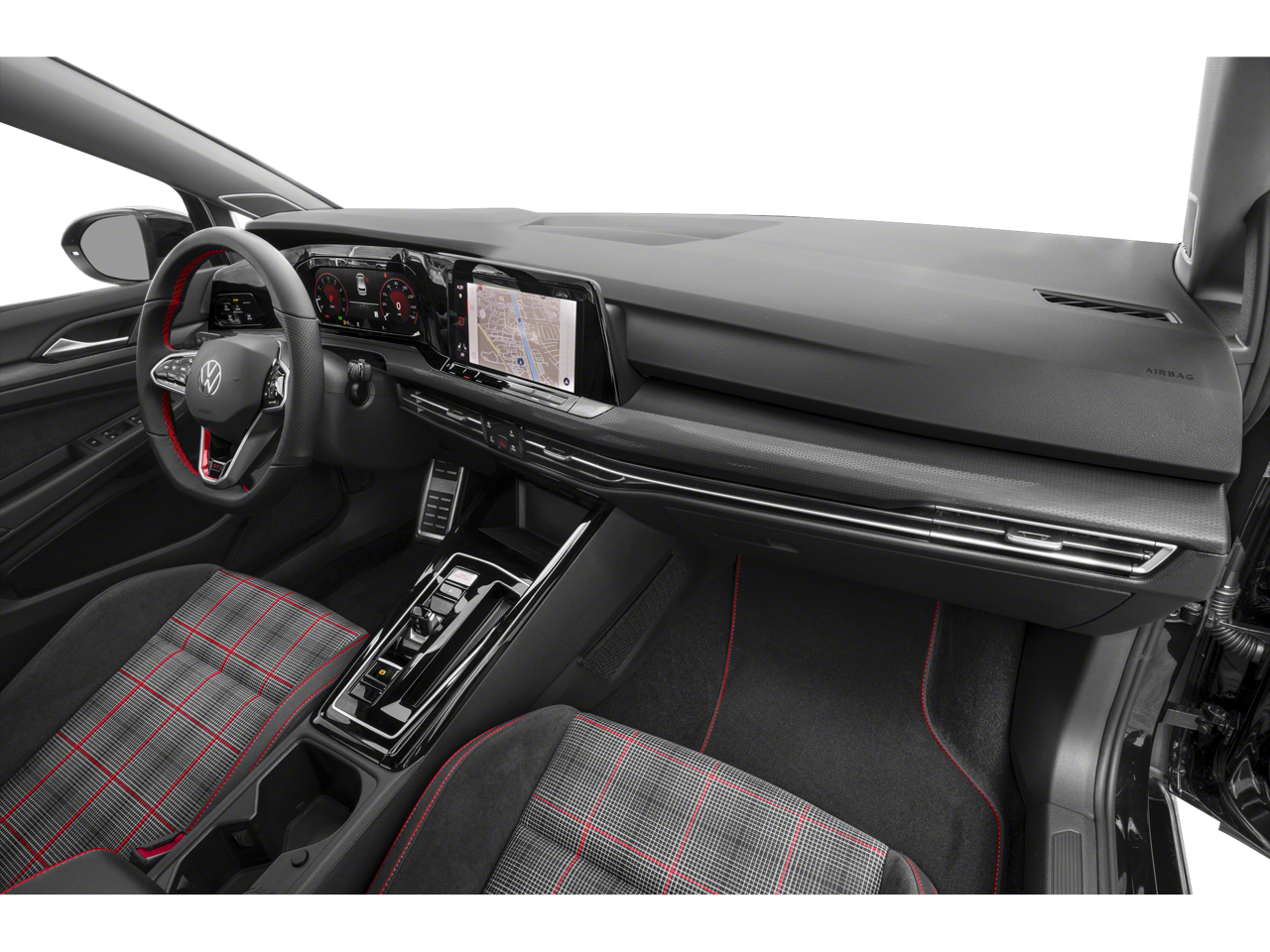 This Golf GTI is well equipped with 4-Wheel Disc Brakes, 9 Speakers, ABS brakes, Air Conditioning, Alloy wheels, AM/FM radio: SiriusXM with 360L, Auto-dimming Rear-View mirror, Automatic temperature control, Brake assist, Bumpers: body-color, Cloth Seating Surfaces, Compass, Delay-off headlights, Driver door bin, Driver vanity mirror, Dual front impact airbags, Dual front side impact airbags, Electronic Stability Control, Emergency communication system: VW Car-Net Safe & Secure 5-year, Exterior Parking Camera Rear, Forward collision: FCW w/Autonomous Emergency Braking mitigation, Four wheel independent suspension, Front anti-roll bar, Front Bucket Seats, Front Center Armrest, Front fog lights, Front reading lights, Fully automatic headlights, harman/kardon Speakers, Heated door mirrors, Heated front seats, Heated Front Top Sport Seats, Heated steering wheel, Illuminated entry, Lane Departure Warning System, Leather steering wheel, Low tire pressure warning, Navigation System, Occupant sensing airbag, Outside temperature display, Overhead airbag, Overhead console, Panic alarm, Passenger door bin, Passenger vanity mirror, Power door mirrors, Power driver seat, Power moonroof: Panoramic, Power passenger seat, Power steering, Power windows, Radio data system, Radio: MIB3 Discover Pro w/10" Touchscreen Navi, Rain sensing wipers, Rear anti-roll bar, Rear reading lights, Rear seat center armrest, Rear window defroster, Rear window wiper, Remote keyless entry, Security system, Speed control, Speed-sensing steering, Speed-Sensitive Wipers, Split folding rear seat, Spoiler, Sport steering wheel, Steering wheel mounted audio controls, Tachometer, Telescoping steering wheel, Tilt steering wheel, Traction control, Trip computer, Turn signal indicator mirrors, Variably intermittent wipers, and Wheels: 18" 2-Tone Machined Alloy.