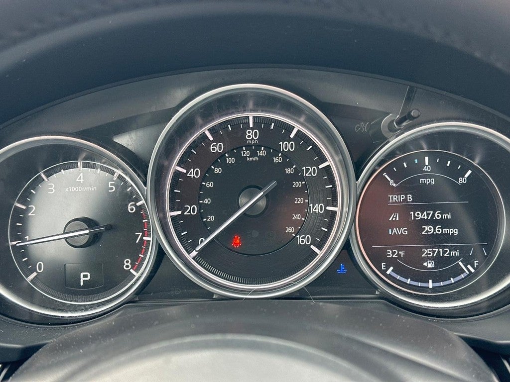 This Mazda CX-5 is well equipped with Mazda Certified Pre-Owned Certified, 4-Wheel Disc Brakes, 6 Speakers, ABS brakes, Air Conditioning, Alloy wheels, AM/FM radio, AppLink/Apple CarPlay and Android Auto, Auto High-beam Headlights, Auto-dimming Rear-View mirror, Automatic temperature control, Brake assist, Bumpers: body-color, Delay-off headlights, Driver door bin, Driver vanity mirror, Dual front impact airbags, Dual front side impact airbags, E911 Automatic Emergency Notification, Electronic Stability Control, Emergency communication system: MAZDA CONNECT, Exterior Parking Camera Rear, Four wheel independent suspension, Front anti-roll bar, Front Bucket Seats, Front Center Armrest w/Storage, Front dual zone A/C, Front reading lights, Fully automatic headlights, Garage door transmitter: HomeLink, Heated Front Bucket Seats, Heated front seats, Illuminated entry, Infotainment System Voice Command, Leather Seat Trim, Leather Shift Knob, Leather steering wheel, Low tire pressure warning, Memory seat, Multifunction Commander Control, Occupant sensing airbag, Outside temperature display, Overhead airbag, Overhead console, Pandora, Panic alarm, Passenger door bin, Passenger vanity mirror, Power door mirrors, Power driver seat, Power Liftgate, Power moonroof, Power passenger seat, Power steering, Power windows, Radio Broadcast Data System Program Information, Radio data system, Radio: AM/FM/HD Audio System, Rain sensing wipers, Rear anti-roll bar, Rear reading lights, Rear seat center armrest, Rear window defroster, Rear window wiper, Remote keyless entry, SMS Text Msg Audio Delivery & Reply, Speed control, Speed-sensing steering, Split folding rear seat, Spoiler, Steering wheel mounted audio controls, Tachometer, Telescoping steering wheel, Tilt steering wheel, Traction control, Trip computer, Turn signal indicator mirrors, Variably intermittent wipers, and Wheels: 17" x 7J Aluminum Alloy.