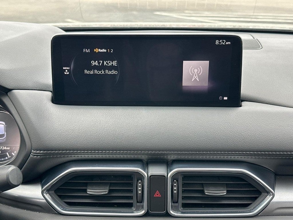 This Mazda CX-5 is well equipped with Mazda Certified Pre-Owned Certified, 4-Wheel Disc Brakes, 6 Speakers, ABS brakes, Air Conditioning, Alloy wheels, AM/FM radio, AppLink/Apple CarPlay and Android Auto, Auto High-beam Headlights, Auto-dimming Rear-View mirror, Automatic temperature control, Brake assist, Bumpers: body-color, Delay-off headlights, Driver door bin, Driver vanity mirror, Dual front impact airbags, Dual front side impact airbags, E911 Automatic Emergency Notification, Electronic Stability Control, Emergency communication system: MAZDA CONNECT, Exterior Parking Camera Rear, Four wheel independent suspension, Front anti-roll bar, Front Bucket Seats, Front Center Armrest w/Storage, Front dual zone A/C, Front reading lights, Fully automatic headlights, Garage door transmitter: HomeLink, Heated Front Bucket Seats, Heated front seats, Illuminated entry, Infotainment System Voice Command, Leather Seat Trim, Leather Shift Knob, Leather steering wheel, Low tire pressure warning, Machine Gray Metallic Paint, Memory seat, Multifunction Commander Control, Occupant sensing airbag, Outside temperature display, Overhead airbag, Overhead console, Pandora, Panic alarm, Passenger door bin, Passenger vanity mirror, Power door mirrors, Power driver seat, Power Liftgate, Power moonroof, Power passenger seat, Power steering, Power windows, Radio Broadcast Data System Program Information, Radio data system, Radio: AM/FM/HD Audio System, Rain sensing wipers, Rear anti-roll bar, Rear reading lights, Rear seat center armrest, Rear window defroster, Rear window wiper, Remote keyless entry, SMS Text Msg Audio Delivery & Reply, Speed control, Speed-sensing steering, Split folding rear seat, Spoiler, Steering wheel mounted audio controls, Tachometer, Telescoping steering wheel, Tilt steering wheel, Traction control, Trip computer, Turn signal indicator mirrors, Variably intermittent wipers, and Wheels: 17" x 7J Aluminum Alloy.