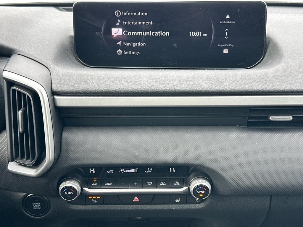 This Mazda CX-50 is well equipped with Mazda Certified Pre-Owned Certified, 12 Speakers, 4-Wheel Disc Brakes, ABS brakes, Air Conditioning, Alloy wheels, AM/FM radio: SiriusXM, AppLink/Apple CarPlay and Android Auto, Auto High-beam Headlights, Automatic temperature control, Brake assist, Bumpers: body-color, Delay-off headlights, Driver door bin, Driver vanity mirror, Dual front impact airbags, Dual front side impact airbags, Electronic Stability Control, Emergency communication system: MAZDA CONNECT, Exterior Parking Camera Rear, Front anti-roll bar, Front Bucket Seats, Front Center Armrest, Front dual zone A/C, Front reading lights, Front wheel independent suspension, Fully automatic headlights, Half Leatherette Seat Trim, Heated door mirrors, Heated front seats, Heated Front Seats w/3 Level Adjustment, Illuminated entry, Knee airbag, Leather Shift Knob, Leather steering wheel, Low tire pressure warning, Occupant sensing airbag, Outside temperature display, Overhead airbag, Overhead console, Panic alarm, Passenger door bin, Passenger vanity mirror, Power door mirrors, Power driver seat, Power Liftgate, Power moonroof, Power steering, Power windows, Radio data system, Radio: AM/FM/HD Bose 12-Speaker Audio Sound System, Rain sensing wipers, Rear seat center armrest, Rear window defroster, Rear window wiper, Remote keyless entry, Speed control, Speed-sensing steering, Split folding rear seat, Spoiler, Steering wheel mounted audio controls, Tachometer, Telescoping steering wheel, Tilt steering wheel, Traction control, Trip computer, Turn signal indicator mirrors, Variably intermittent wipers, Wheels: 17" x 7J Aluminum Alloy Black Metallic Finish, and Wind Chill Pearl Paint Charge.