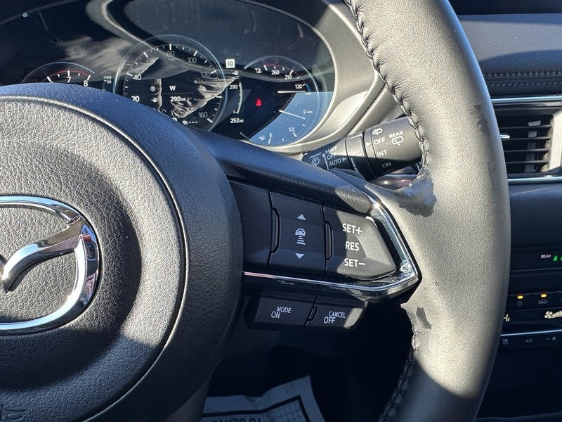 This Mazda CX-5 is well equipped with Mazda Certified Pre-Owned Certified, 10 Speakers, 4-Wheel Disc Brakes, ABS brakes, Air Conditioning, Alloy wheels, AM/FM radio: SiriusXM, AppLink/Apple CarPlay and Android Auto, Auto High-beam Headlights, Auto-dimming Rear-View mirror, Automatic temperature control, Brake assist, Bumpers: body-color, Delay-off headlights, Driver door bin, Driver vanity mirror, Dual front impact airbags, Dual front side impact airbags, E911 Automatic Emergency Notification, Electronic Stability Control, Emergency communication system: MAZDA CONNECT, Four wheel independent suspension, Front anti-roll bar, Front Bucket Seats, Front Center Armrest w/Storage, Front dual zone A/C, Front reading lights, Fully automatic headlights, Garage door transmitter: HomeLink, Heads-Up Display, Heated door mirrors, Heated front seats, Heated rear seats, Heated steering wheel, Heated/Ventilated Front Bucket Seats, Illuminated entry, Infotainment System Voice Command, Leather Seat Trim, Leather Shift Knob, Leather steering wheel, Low tire pressure warning, Memory seat, Multifunction Commander Control, Occupant sensing airbag, Outside temperature display, Overhead airbag, Overhead console, Pandora, Panic alarm, Passenger door bin, Passenger vanity mirror, Power door mirrors, Power driver seat, Power Liftgate, Power moonroof, Power passenger seat, Power steering, Power windows, Radio Broadcast Data System Program Information, Radio data system, Radio: AM/FM/HD Audio System, Rain sensing wipers, Rear anti-roll bar, Rear reading lights, Rear seat center armrest, Rear window defroster, Rear window wiper, Remote keyless entry, SMS Text Msg Audio Delivery & Reply, Speed control, Speed-sensing steering, Split folding rear seat, Spoiler, Steering wheel mounted audio controls, Tachometer, Telescoping steering wheel, Tilt steering wheel, Traction control, Trip computer, Turn signal indicator mirrors, Variably intermittent wipers, Ventilated front seats, and Wheels: 19" x 7J Aluminum Alloy.