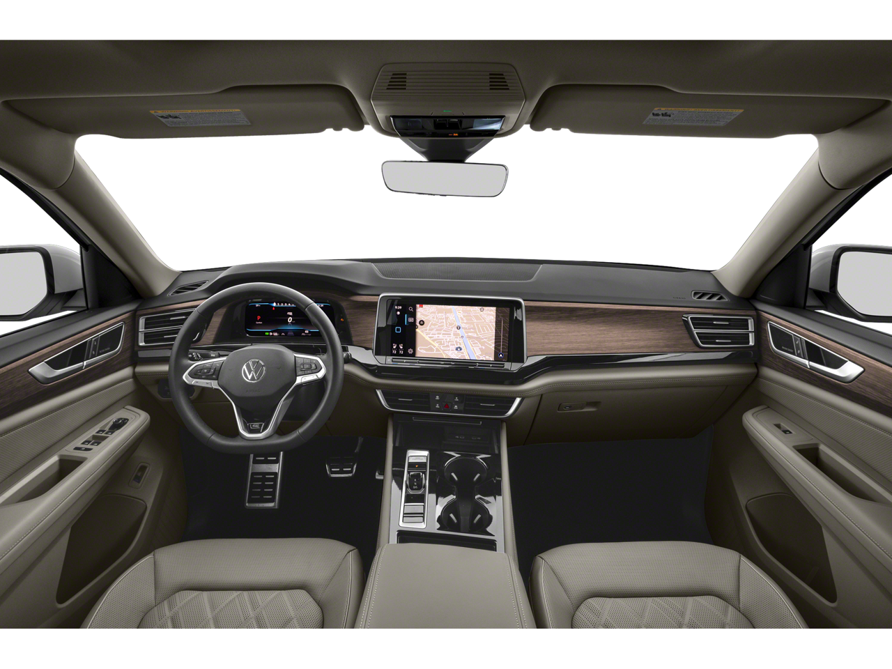 This Atlas is well equipped with 10 Speakers, 3rd row seats: split-bench, 4-Wheel Disc Brakes, 4-Wheel Independent Suspension, ABS brakes, Air Conditioning, Alloy wheels, AM/FM radio: SiriusXM with 360L, Auto High-beam Headlights, Auto-dimming Rear-View mirror, Automatic temperature control, Brake assist, Bumpers: body-color, Compass, Delay-off headlights, Driver door bin, Driver vanity mirror, Dual front impact airbags, Dual front side impact airbags, Electronic Stability Control, Emergency communication system: VW Car-Net Safe & Secure 5-year, Exterior Parking Camera Rear, Four wheel independent suspension, Front anti-roll bar, Front Bucket Seats, Front Center Armrest, Front dual zone A/C, Front fog lights, Front reading lights, Fully automatic headlights, Garage door transmitter: HomeLink, harman/kardon Speakers, Heads-Up Display, Heated and Actively Ventilated Front Bucket Seats, Heated door mirrors, Heated front seats, Heated rear seats, Heated steering wheel, Illuminated entry, Leather steering wheel, Low tire pressure warning, Memory seat, Navigation System, Occupant sensing airbag, Outside temperature display, Overhead airbag, Overhead console, Panic alarm, Passenger door bin, Passenger vanity mirror, Perforated Vienna Leather Seating Surfaces, Power door mirrors, Power driver seat, Power Liftgate, Power moonroof: Panoramic, Power passenger seat, Power steering, Power windows, Radio data system, Radio: MIB3 Discover Pro with Navigation, Rain sensing wipers, Rear air conditioning, Rear anti-roll bar, Rear audio controls, Rear reading lights, Rear seat center armrest, Rear window defroster, Rear window wiper, Remote keyless entry, Seat Inserts with Diamond-Pattern Stitching, Security system, Speed control, Speed-sensing steering, Split folding rear seat, Spoiler, Sport steering wheel, Steering wheel mounted audio controls, Tachometer, Telescoping steering wheel, Tilt steering wheel, Traction control, Trip computer, Turn signal indicator mirrors, Variably intermittent wipers, Ventilated front seats, and Wheels: 21" 2-Tone Machined Alloy.